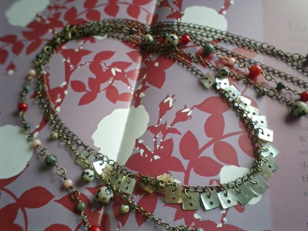 アフリカの風!シリーズです♪ナチュラルなターコイズと珊瑚とシェルとダルメシアンのネックレス3点セットです♪いろいろな組み合わせでお楽しみ頂けます♪ターコイズは4ミリ、6ミリの丸玉で赤の珊瑚は5ミリ、7ミリの丸玉、ピンク珊瑚は4ミリの丸玉です♪大きさ違いをランダムにつなげてラフで可愛いネックレスです♪長さは全長75センチ位で調節自由です♪2連にしても可愛いです♪個性的なダルメシアンは4ミリ、6ミリ、8ミリ、10ミリの丸玉です♪シンプルでキュートなデザインです♪長さは全長78センチ位です♪こちらも2連にしても可愛いです♪7ミリのスクエアのシェルボタンはたくさん並べて楽しいネックレスです♪全長57センチ位で調節自由です♪3点ともブレスレットにも出来ますので2本をネックレスに1本をブレスにしたりと楽しんで頂けます♪シンプルで長く着けられるデザインを考えて作りました♪お揃いのブレスレットも出品予定です♪ハンドメイドをご理解頂いてノークレーム、ノーリターンでお願いします♪