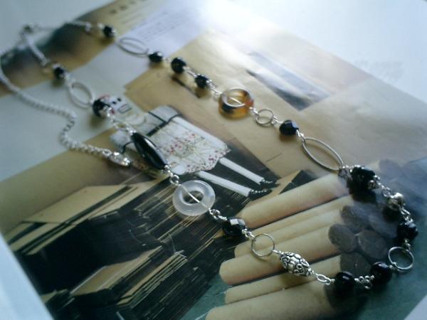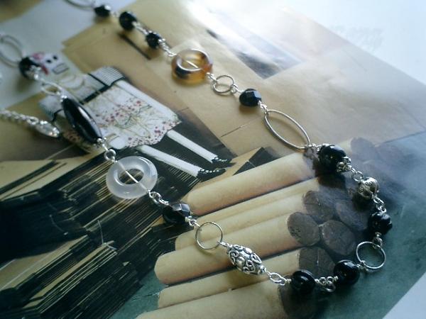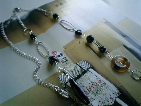 仏蘭西映画みたいに♪シックなオニキスのロマンチックなネックレスです!いろいろなオニキスを合わせてちょっと華やかにまとめました♪オニキスは8ミリ、10ミリの丸玉、10ミリのハートカット、8ミリのSライン、30ミリ×11ミリ位のナツメ型です♪20ミリのカルセドニーのリングやお花模様のカレンシルバーやメタルチャームや座金を合わせてさりげなくロマンチックしています♪長さは全長83センチ位で調節自由です♪2連にしてもぐるぐる巻いてブレスレットにしてもシックで大人っぽい表情です♪仏蘭西映画をイメージして作りました♪シンプルで飽きのこないいつまでも着けられるデザインを考えて作りました!お揃いのブレスレットも出品予定です♪ハンドメイドをご理解頂いてノークレーム、ノーリターンでお願いします