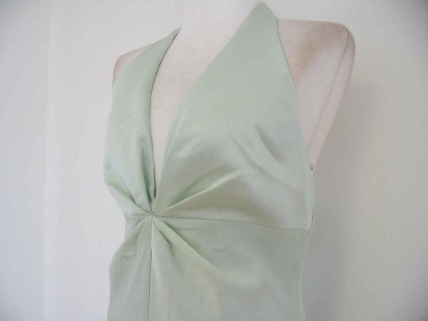 ホルターネックでバストを包むようにタックの入ったフロントでグラマラスな印象です。