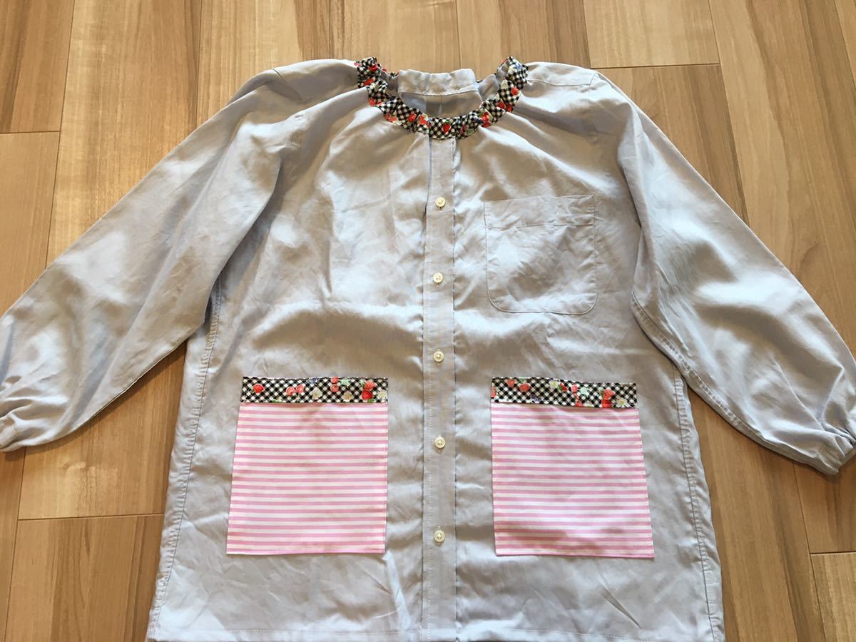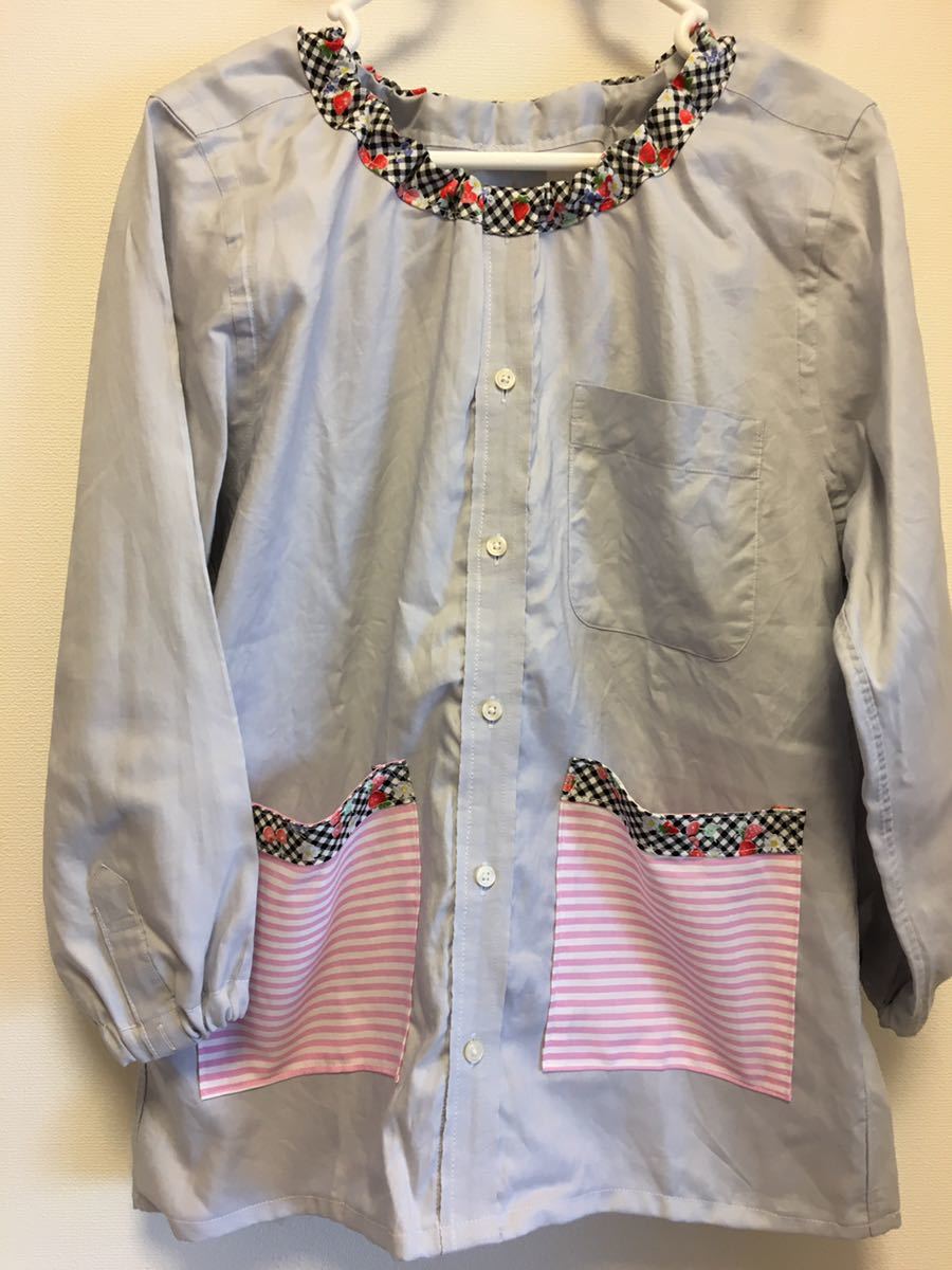 中古の男性用のワイシャツをリメイクしてスモックを作りました。