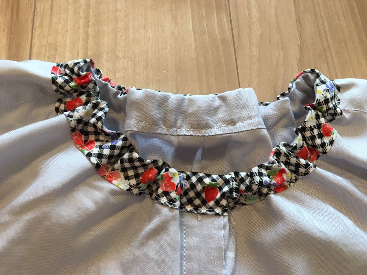 襟周りのバイアスはすべて手作りしていますので、すべて一点物のスモックです。