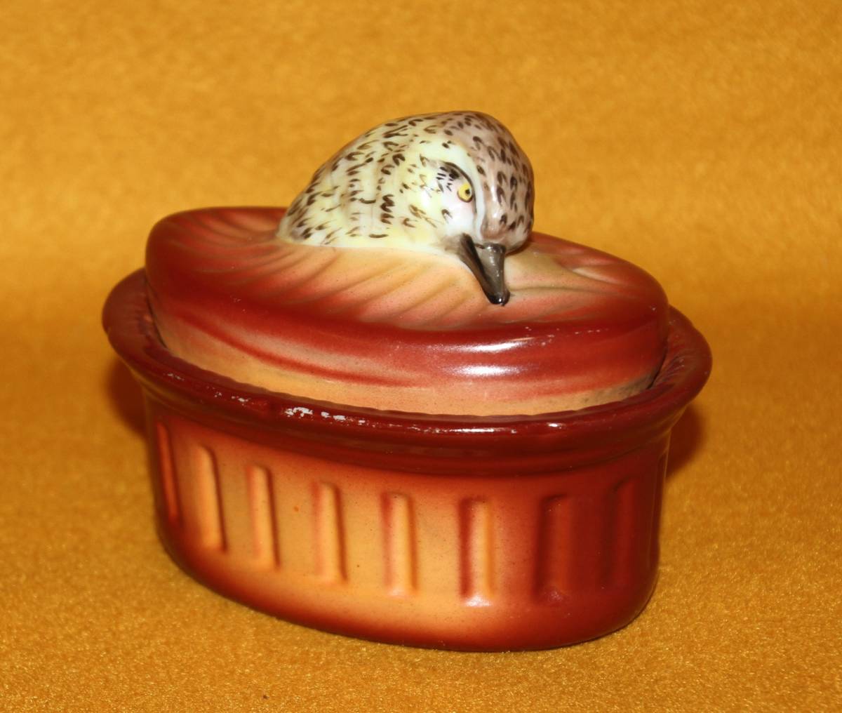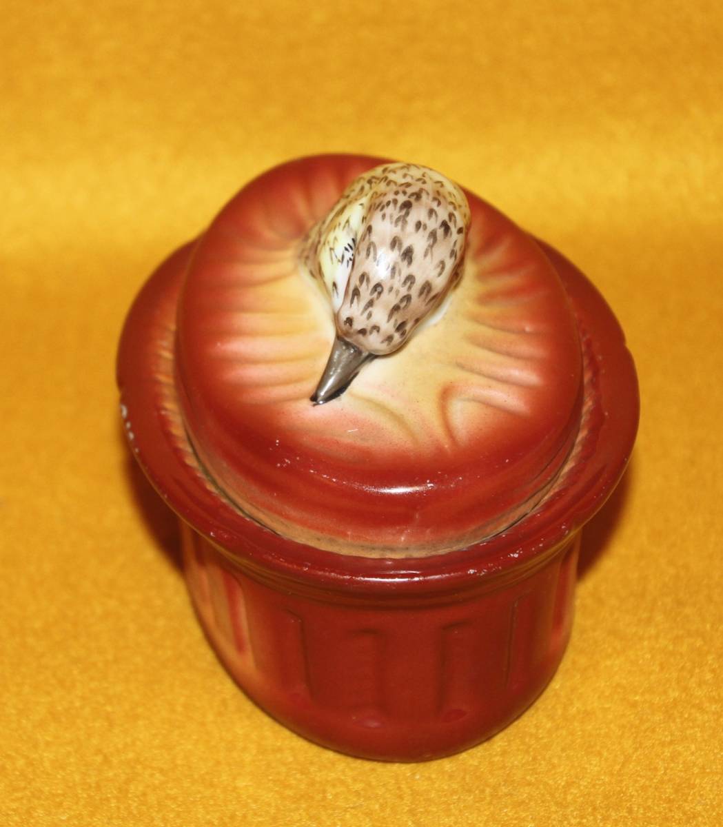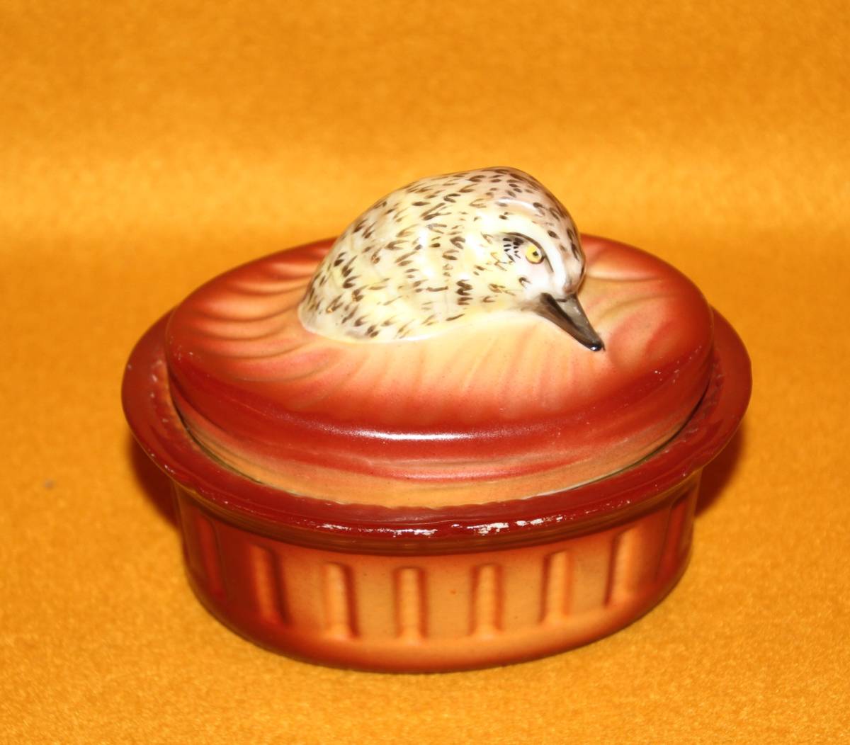 オールドノリタケ   鳥の頭が蓋のつまみになった小物入れ    手描き    陶磁器製     難あり    中古品