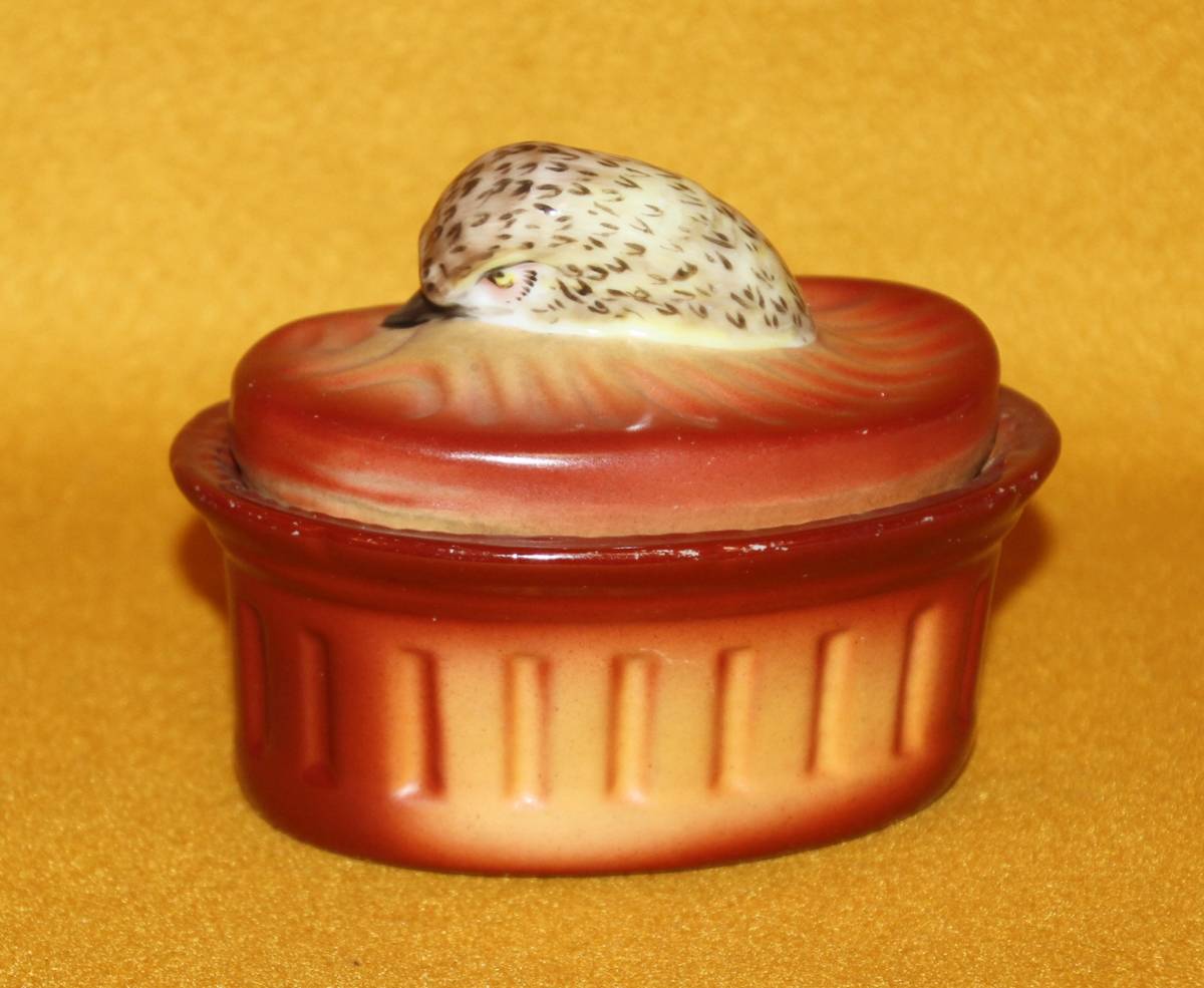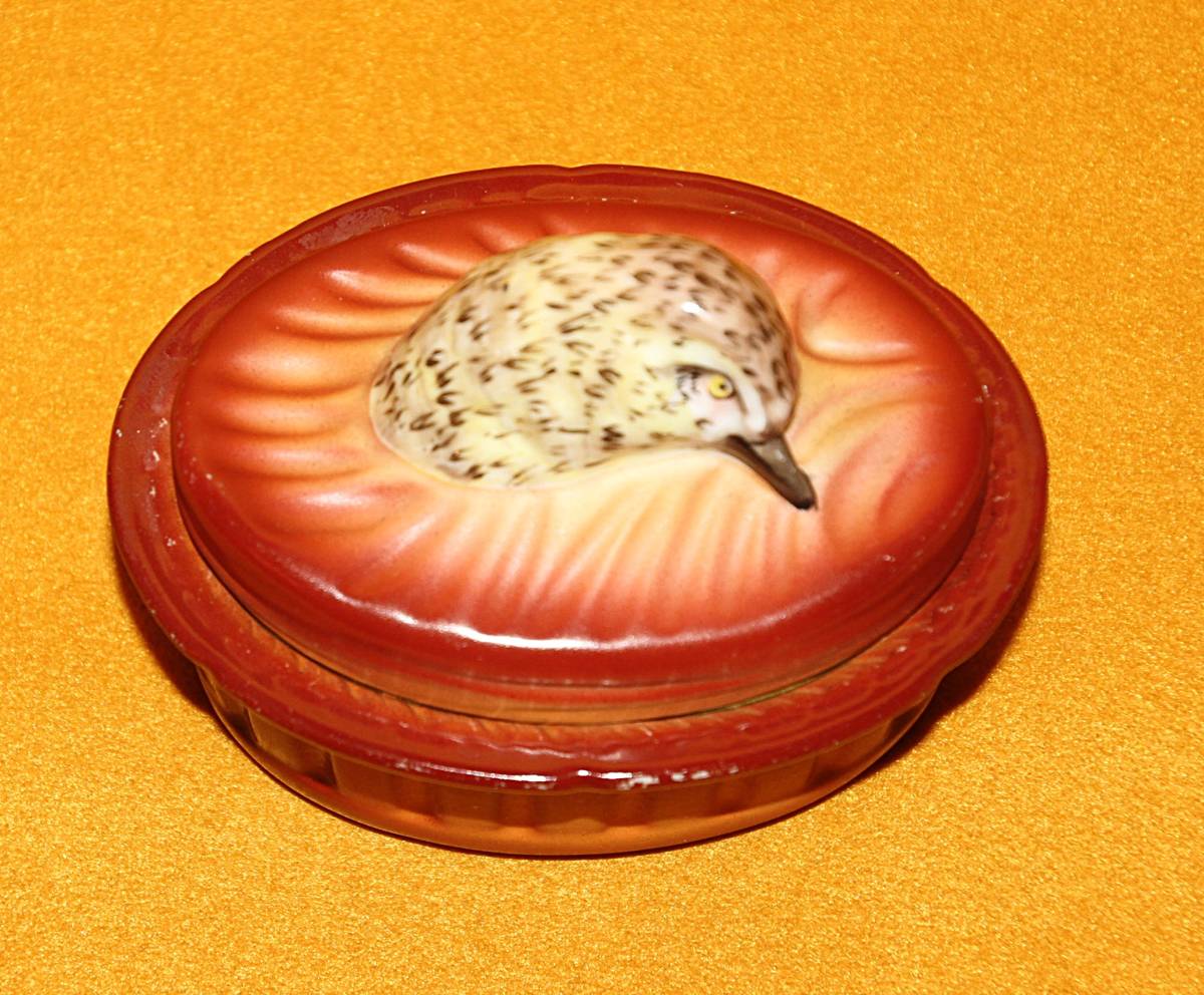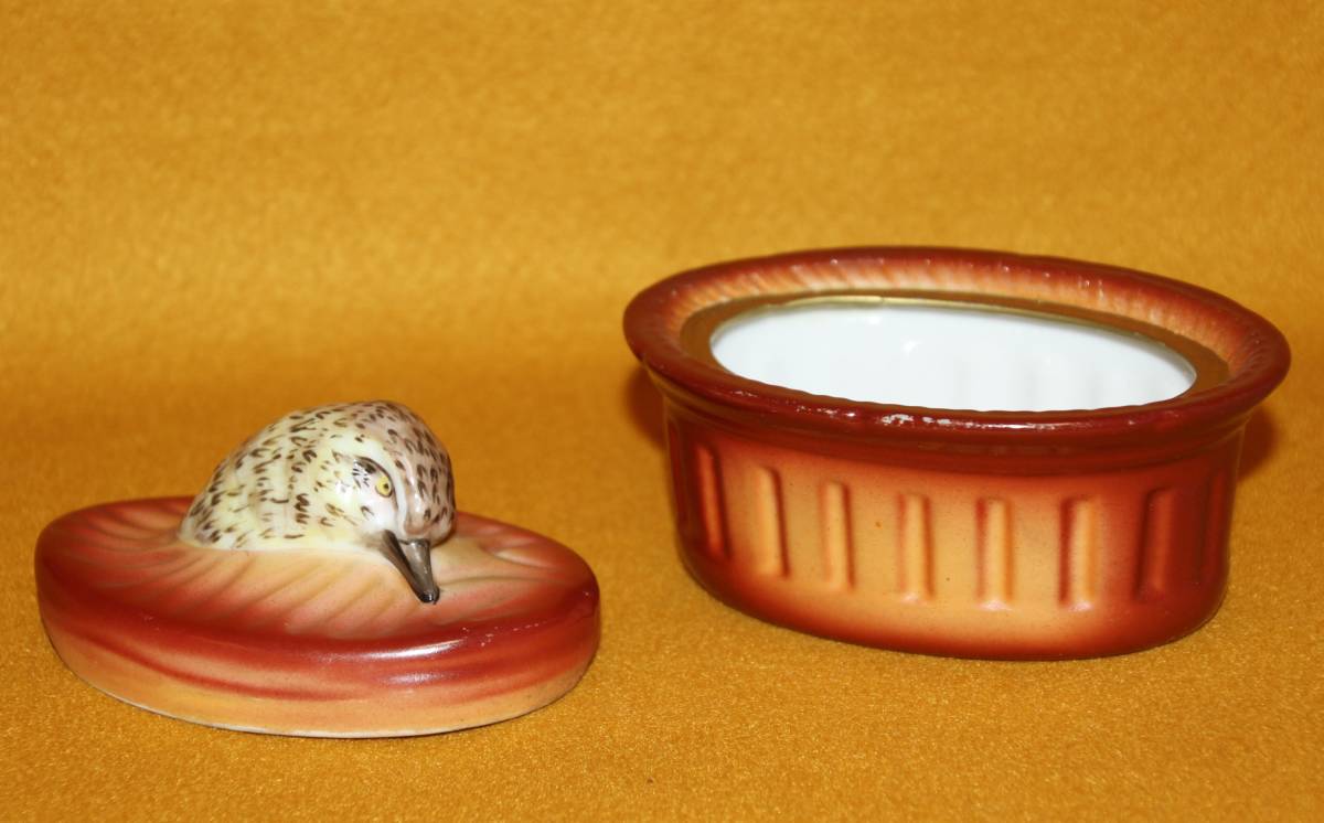 オールドノリタケ   鳥の頭が蓋のつまみになった小物入れ    手描き    陶磁器製     難あり    中古品