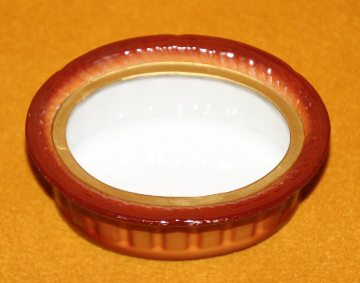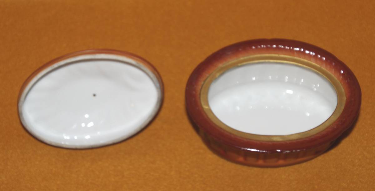 容器の蓋受けの部分が金色に塗装されていますが、おそらくカケを修復した跡と隠すためと思われます。