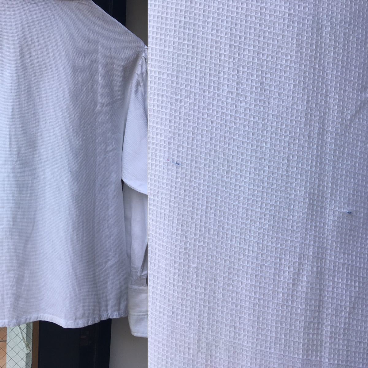 ボウタイ付きブラウスです。ボウタイは取り外し可能です。全体的に使用感ございます。フロント左下と後面に汚れがございます。写真にてご確認ください。ボウタイを取っても可愛いです!