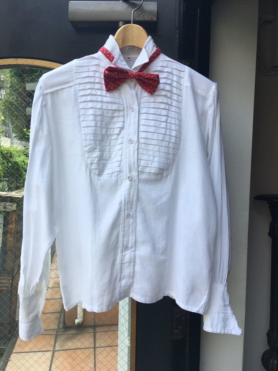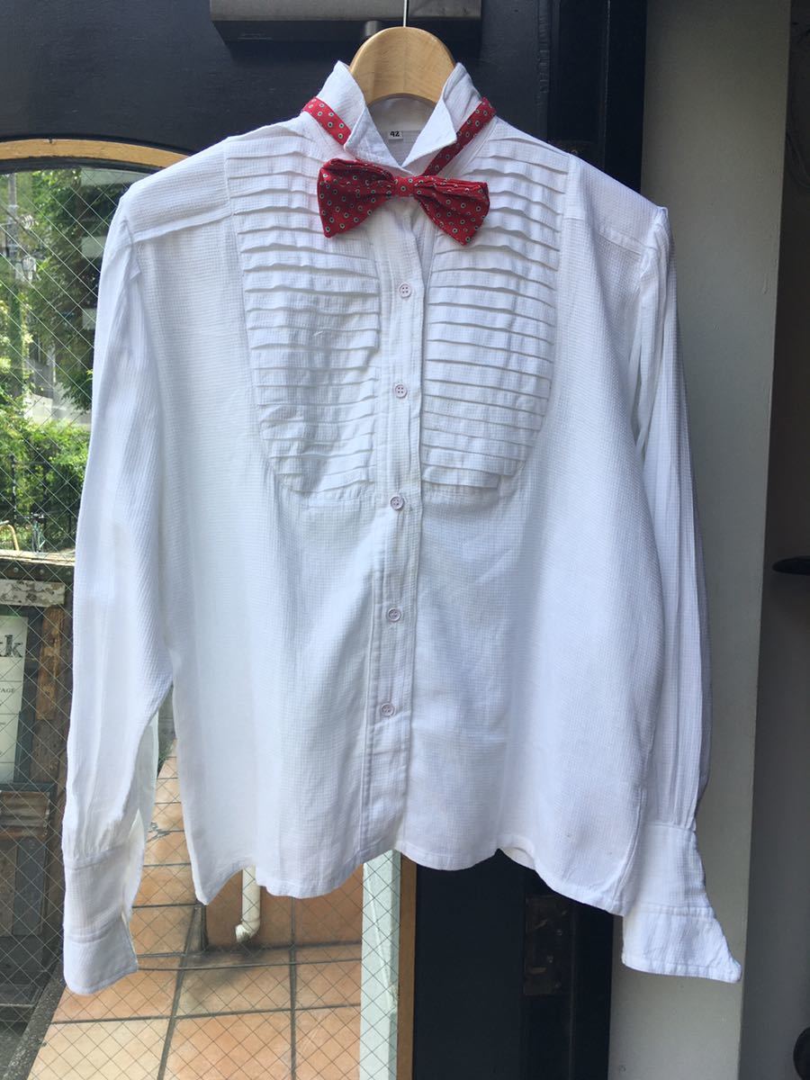 ヨーロッパvintage ボウタイ付きプリーツブラウス