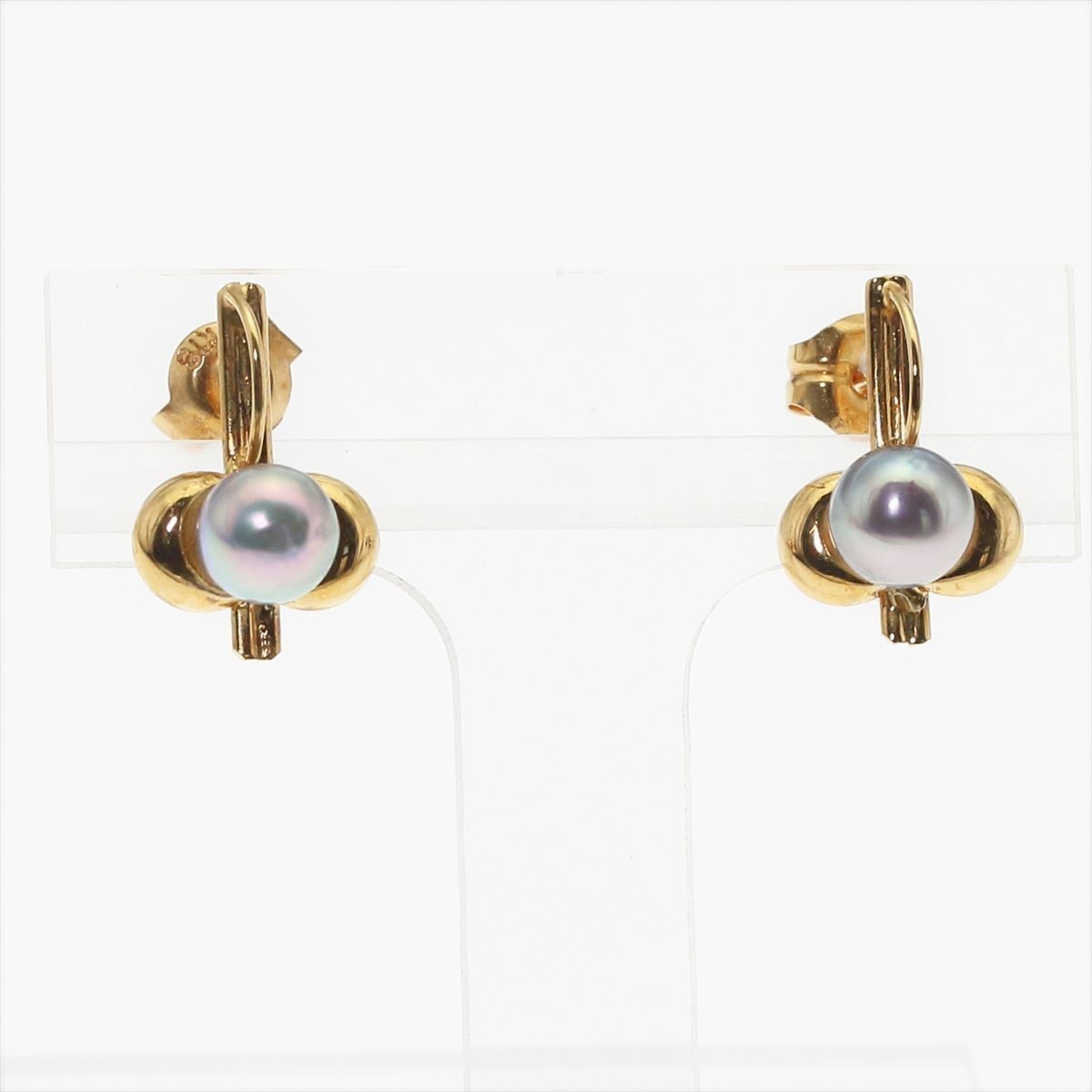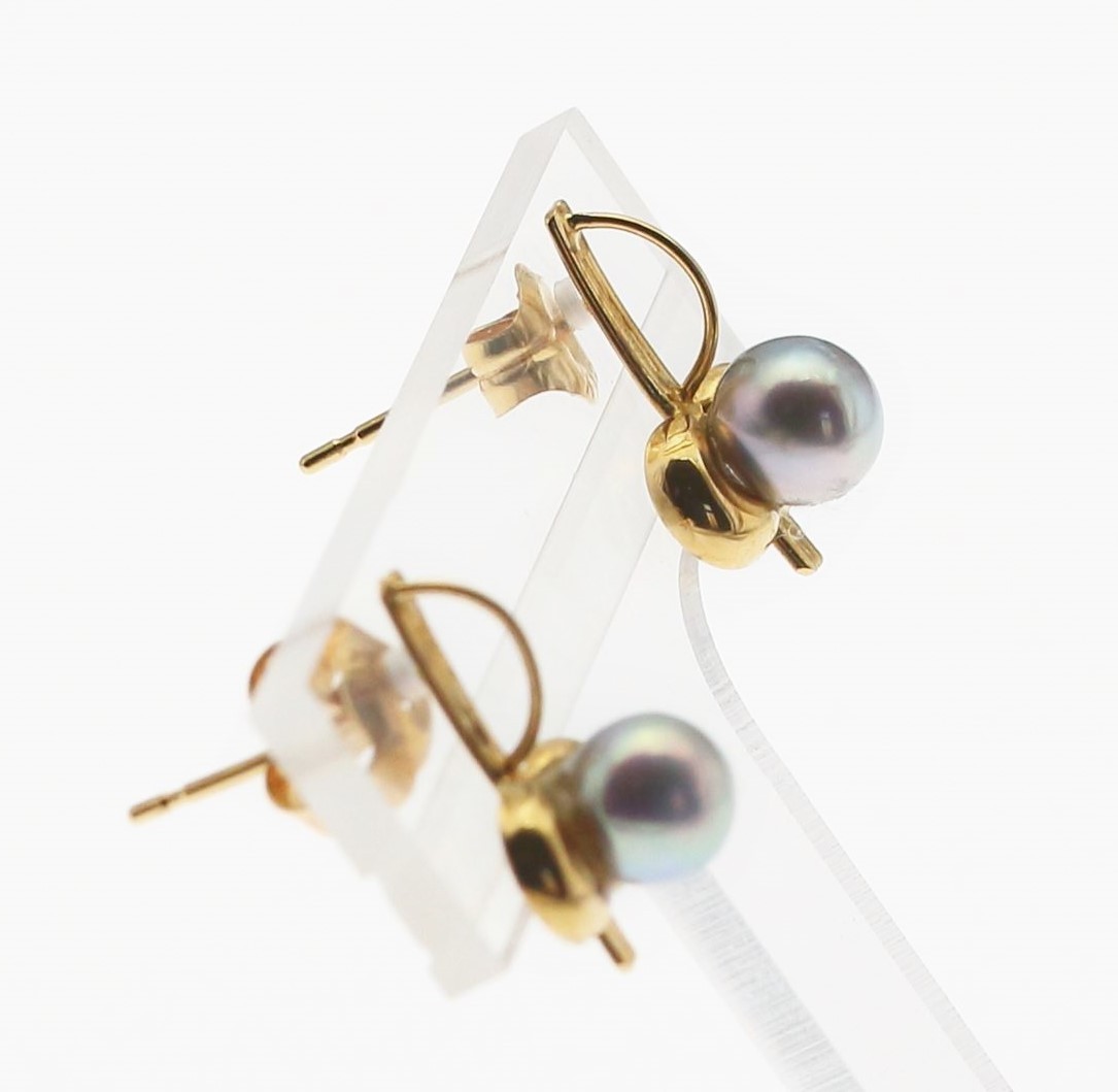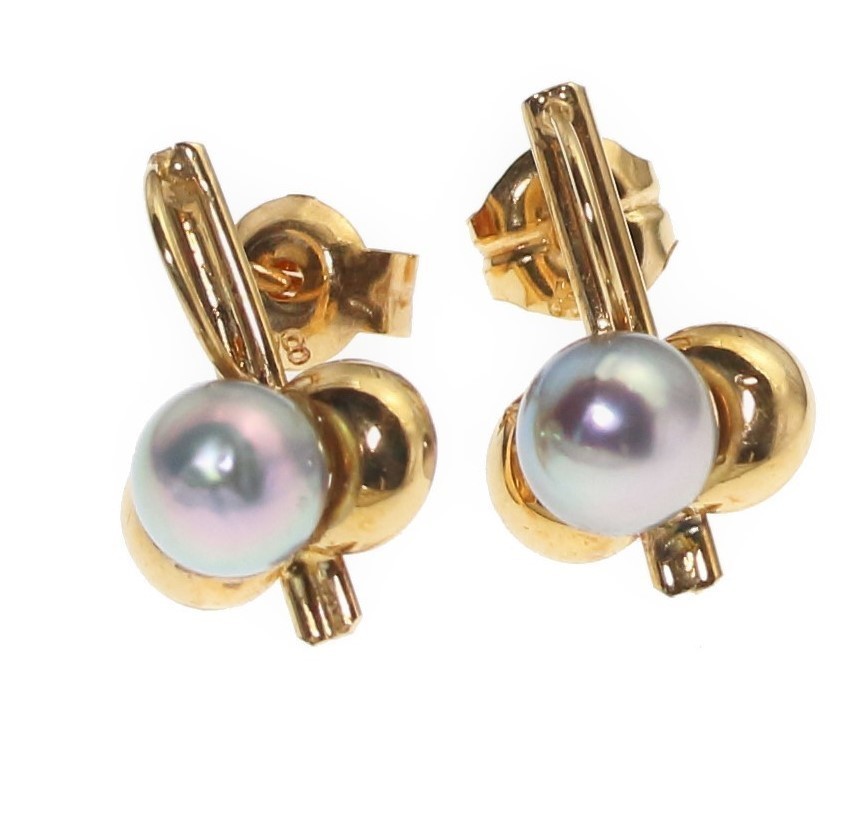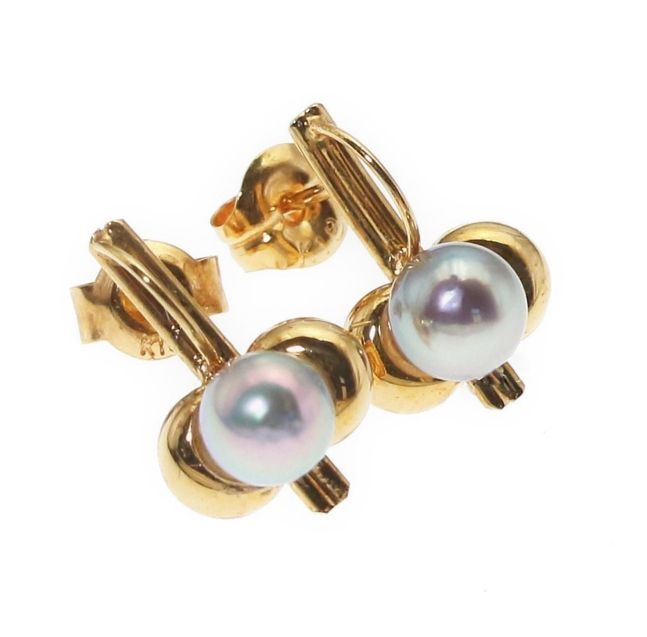 ナチュラルグレーのアコヤのベビーパールを使ったデザインピアスです。