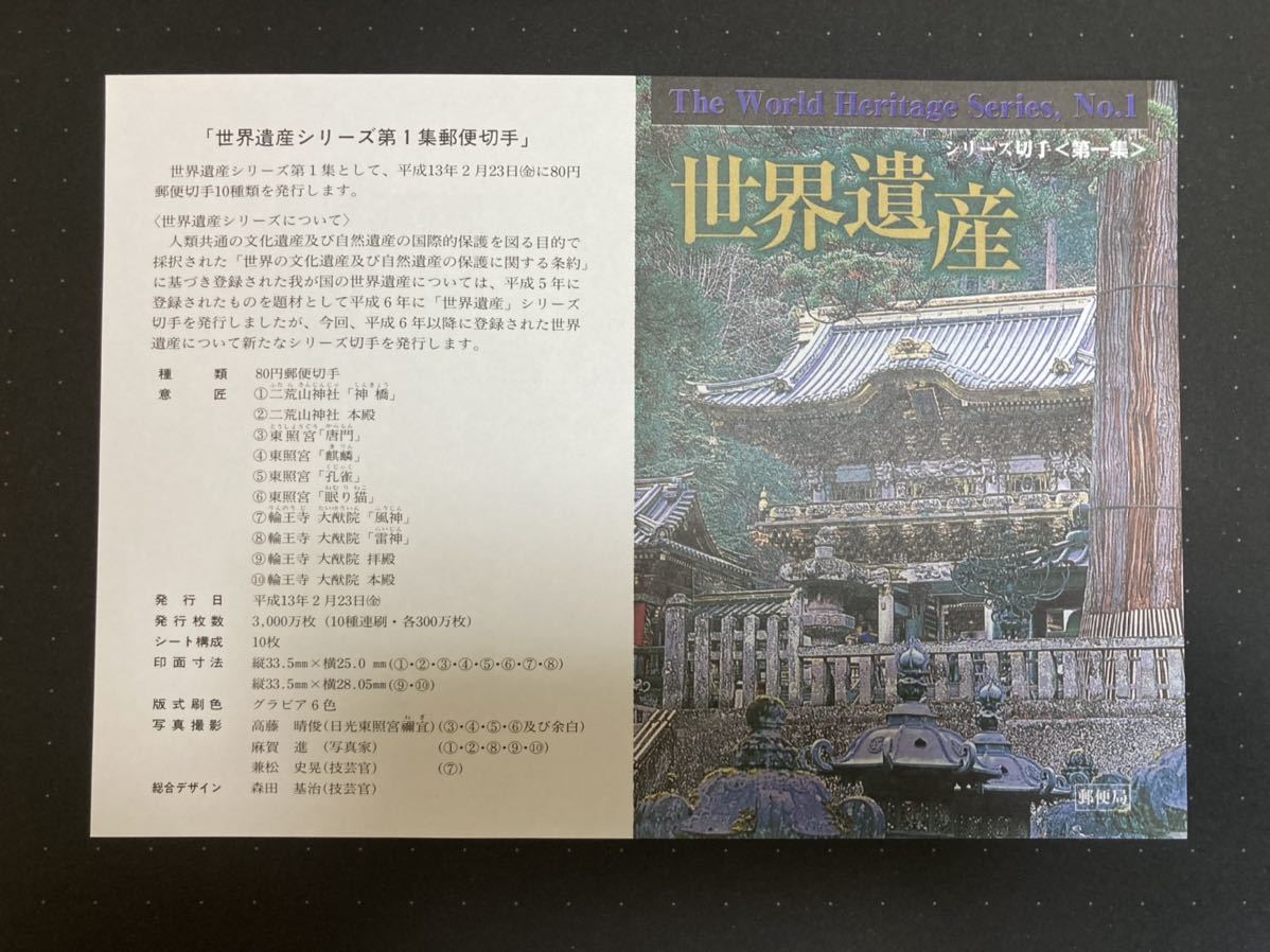 ☆★☆記念切手★世界遺産シリーズ第1集★日光の社寺★2001年★80円×10★新品未使用品★送料無料☆★☆