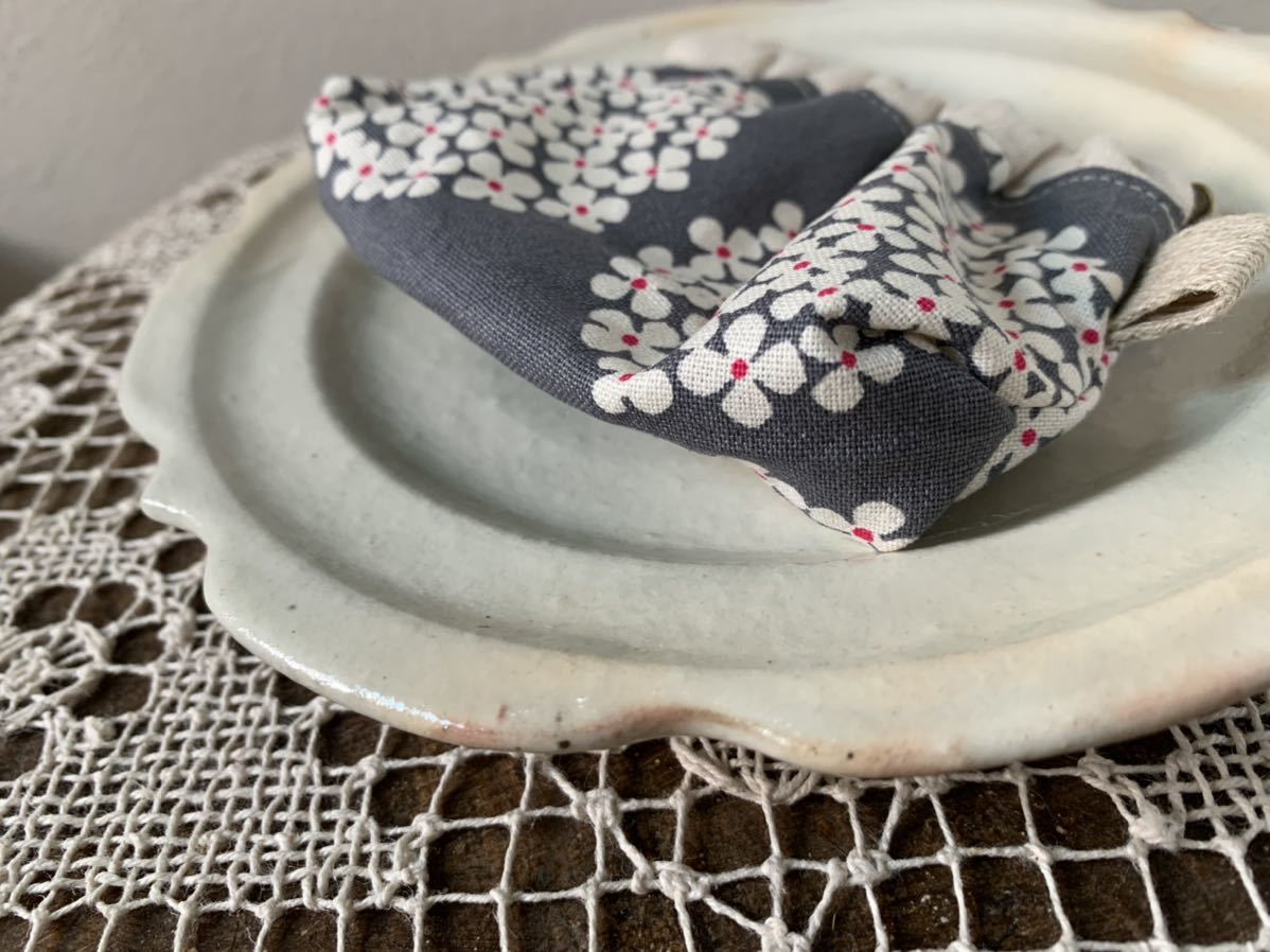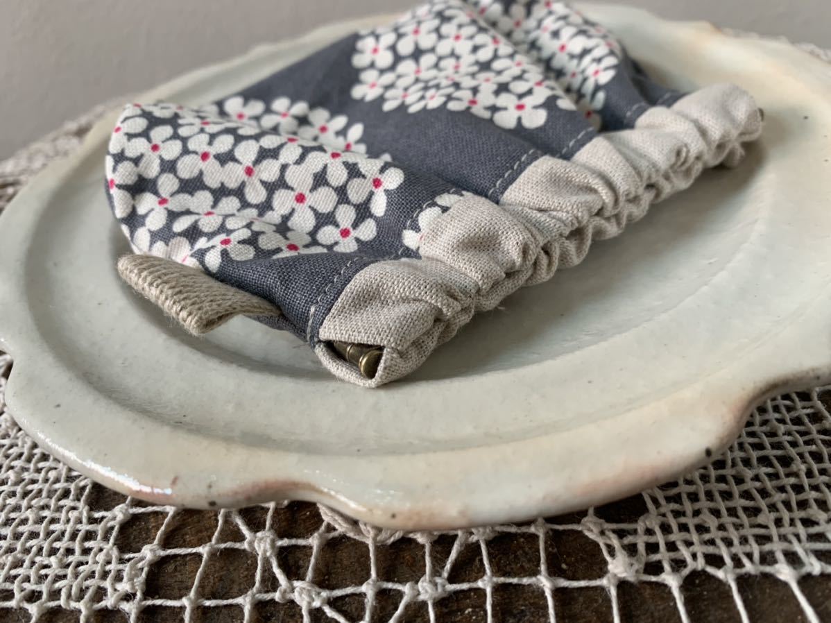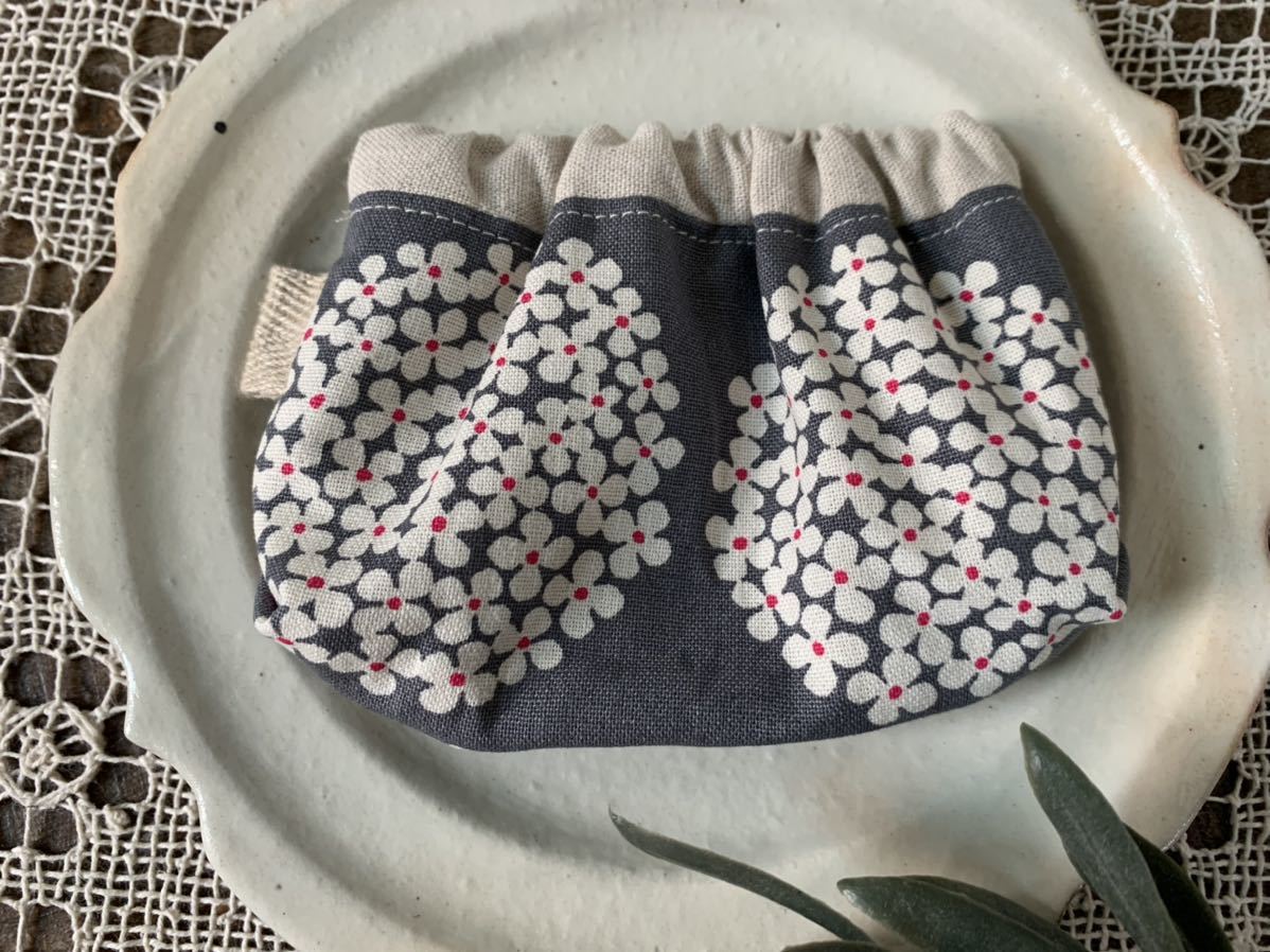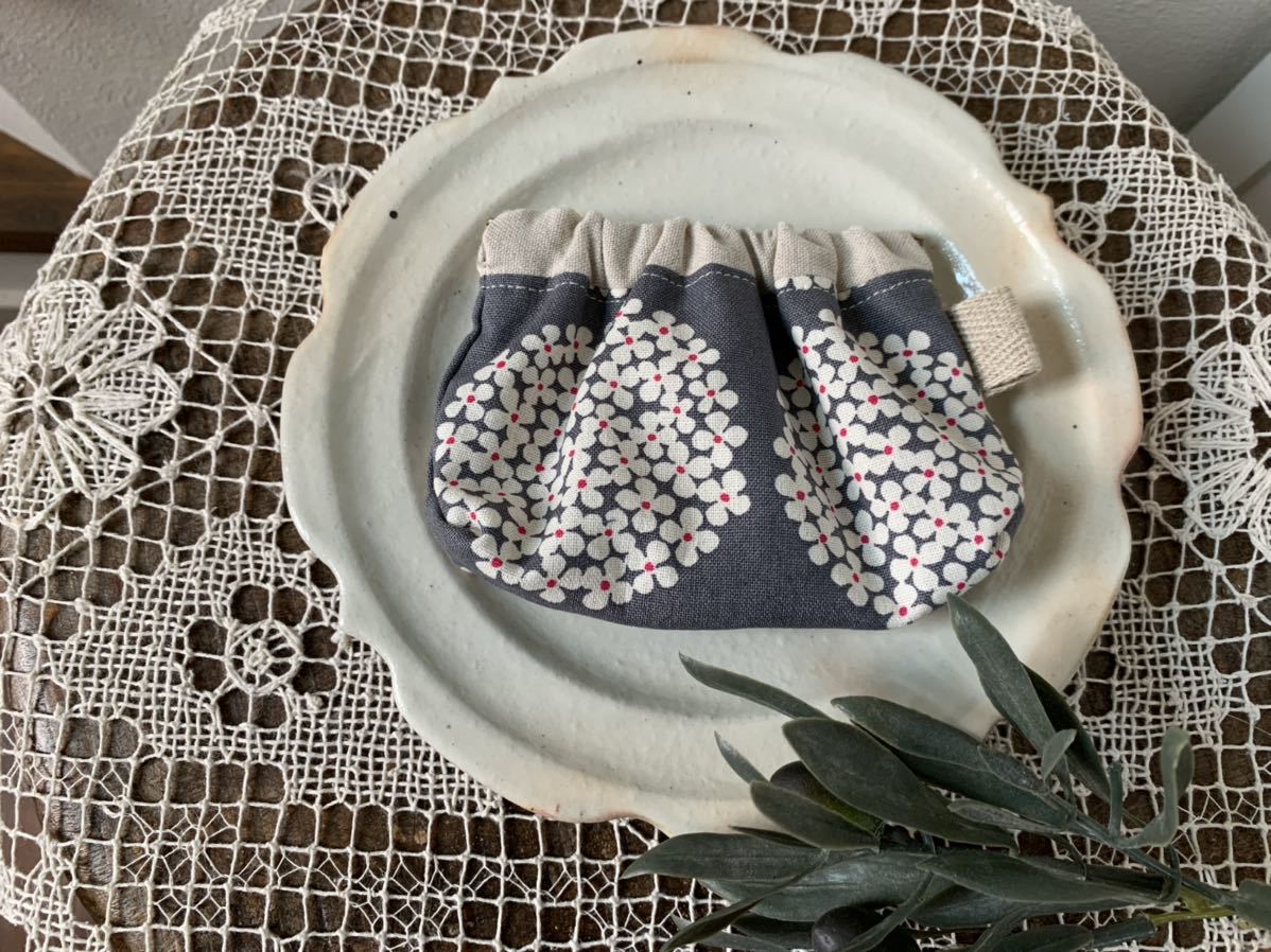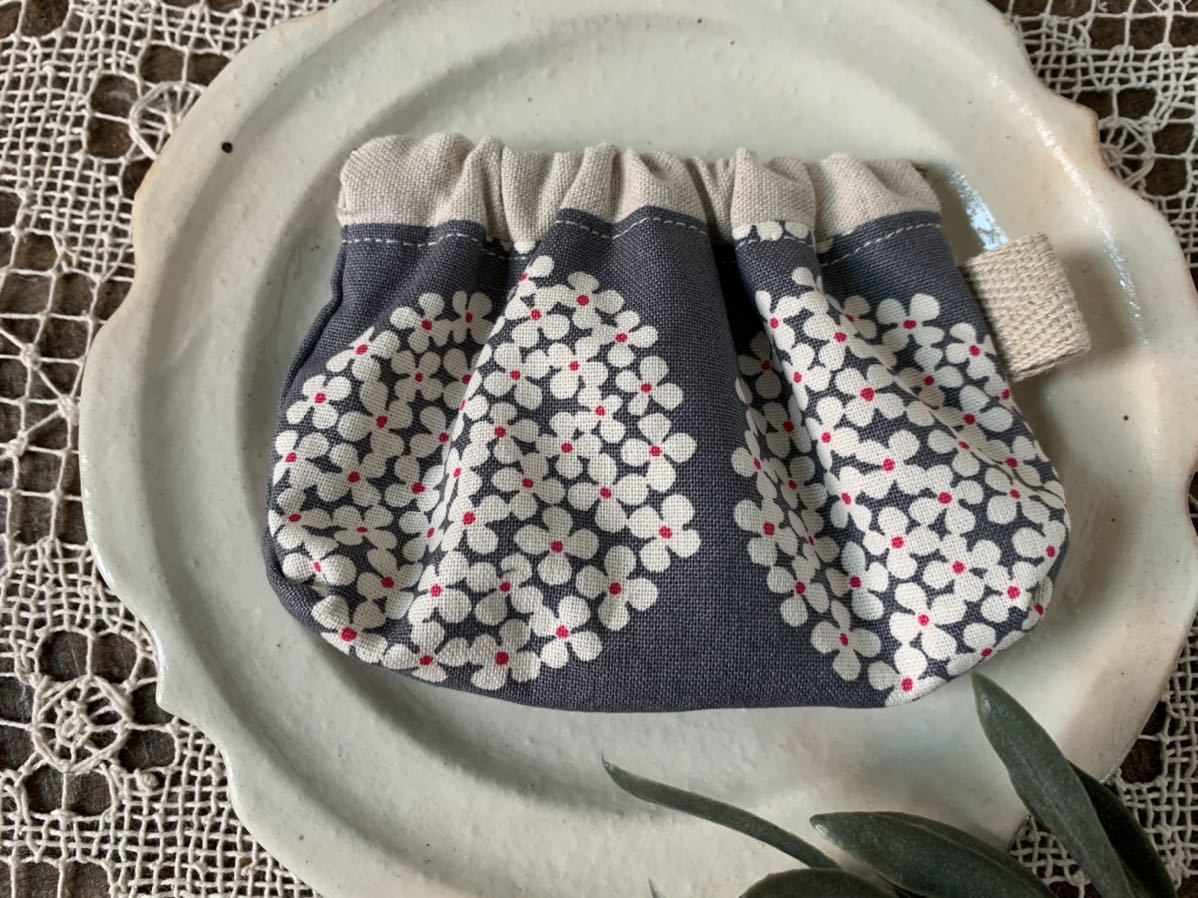 ハンドメイド  バネポーチ ポーチ 小物入れ グレー 紫陽花 花柄 北欧柄