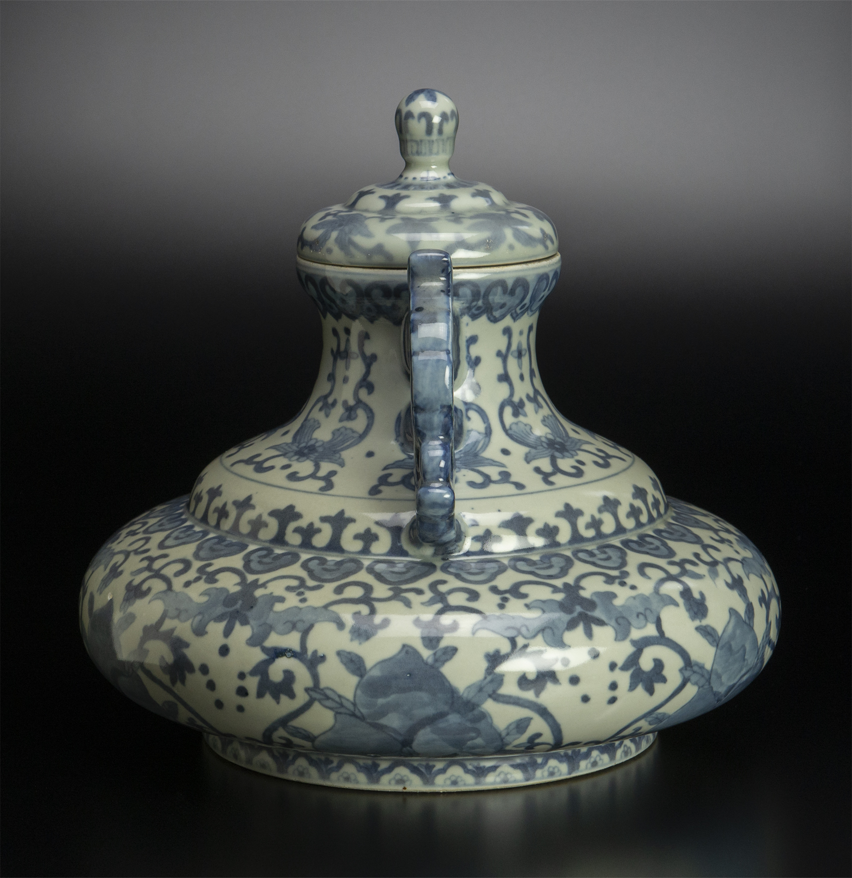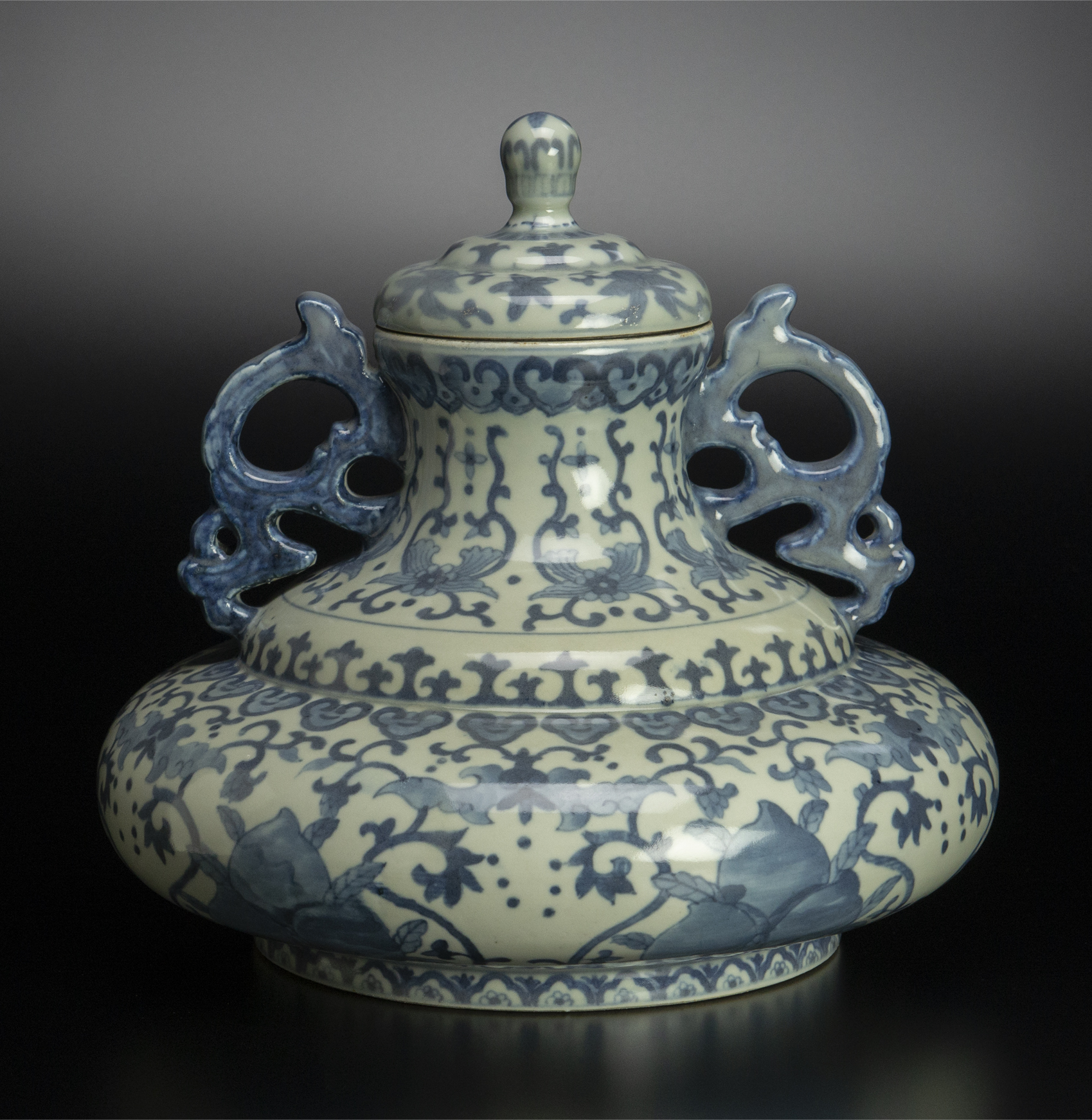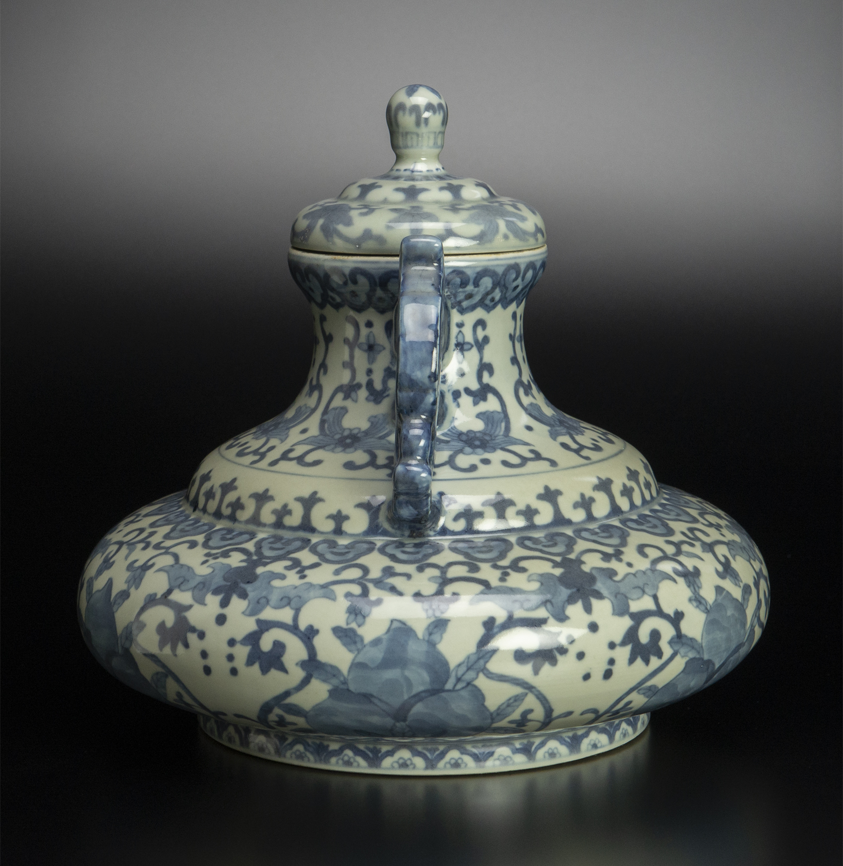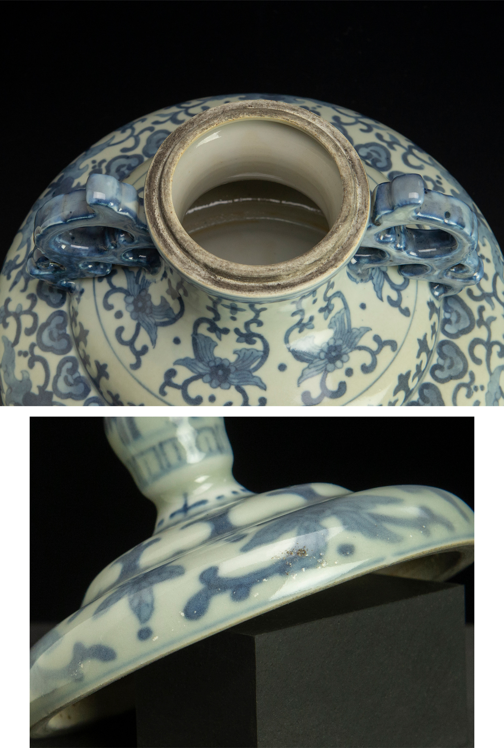 清 青花三多紋双耳蓋瓶 大清乾隆年制款 共箱 中国 古美術