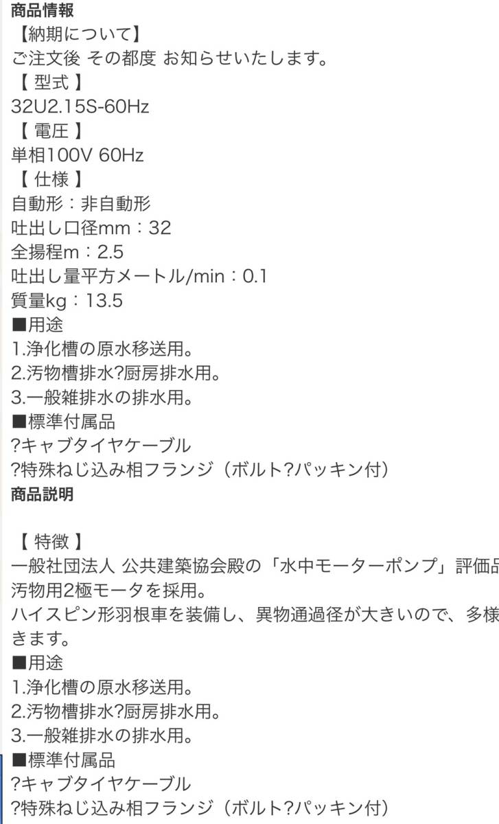 ●メーカー:鶴見製作所/TSURUMI ●商品名:水中ハイスピンポンプ ●型番:32U2.15S ●段ボールの汚れ等ございます。 ●未使用保管品になっております。 |
