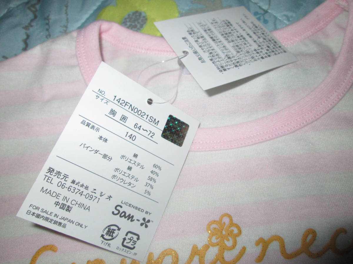〇。新品♪ふんわりねころんボーダー半袖Tシャツ140cmピンク。〇