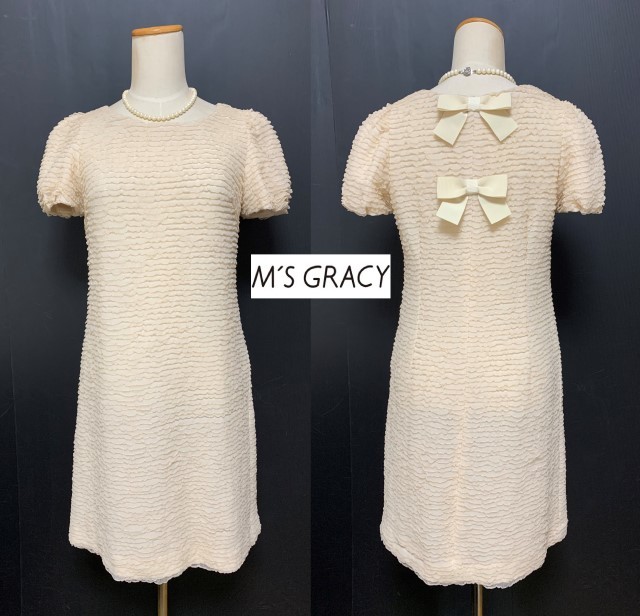 323 M'S GRACY 【エムズグレイシー】 リボン付きシフォンフリル ワンピース