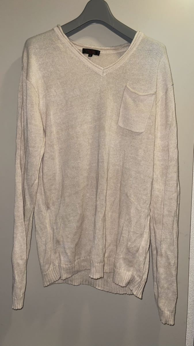 実寸は平置きの場合、着丈69.5cm、肩幅48.5cm、身幅53.5cm、袖丈69cmです