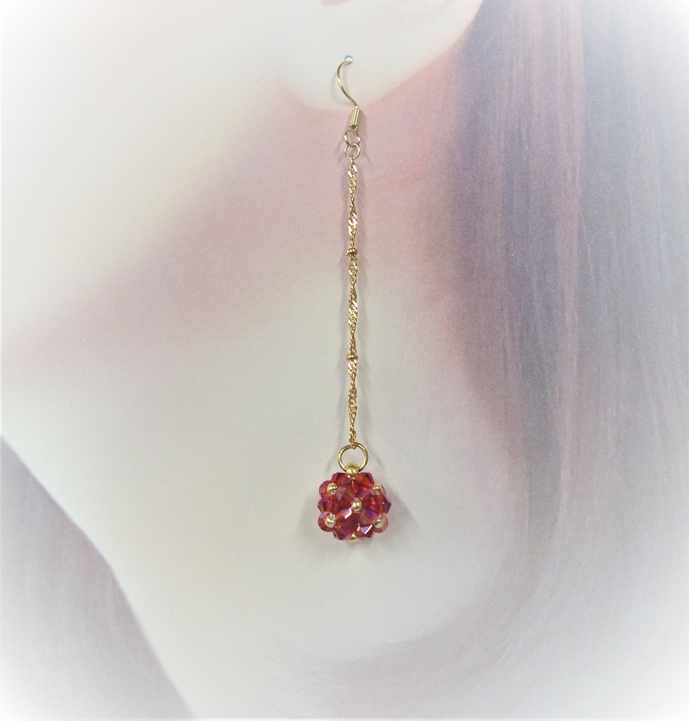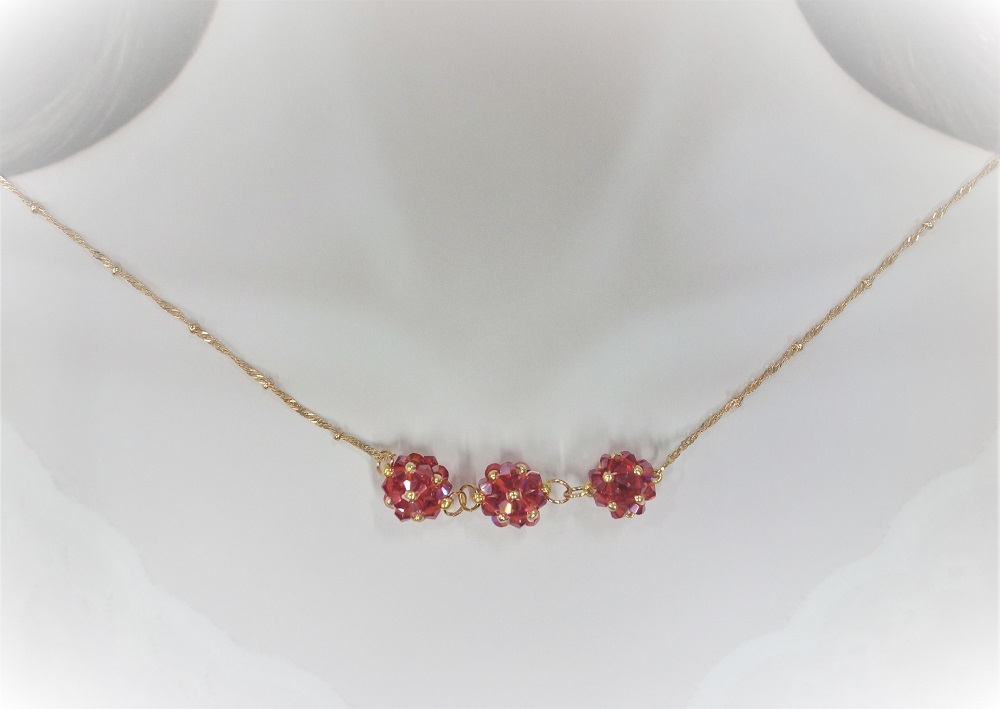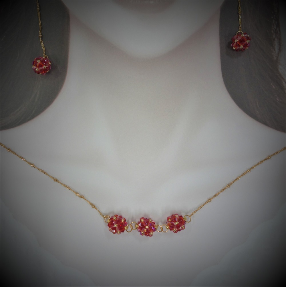 【ビーズ編み/ボール/ネックレス/赤/&ピアス一括販売】送料無料/ハンドメイドアクセサリー