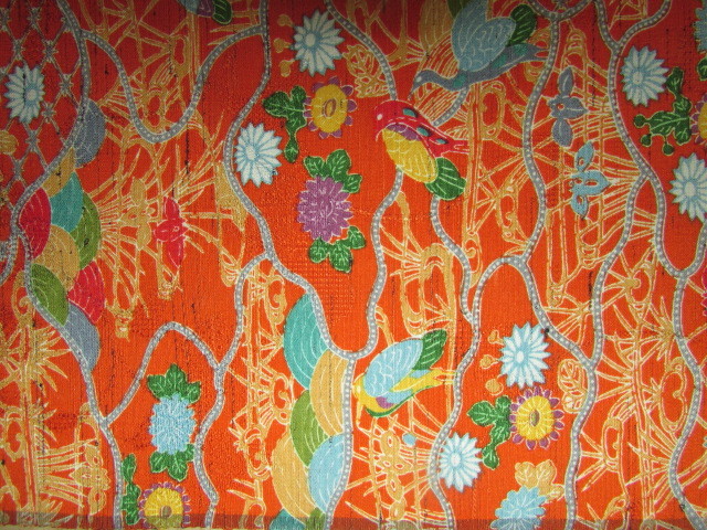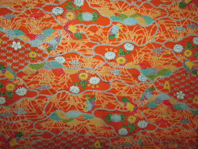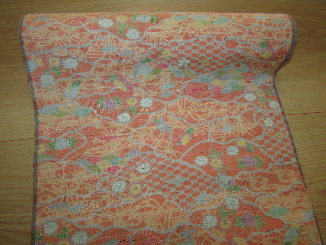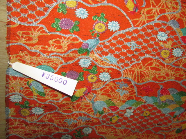 500円値引き(着物屋・蔵出し)しょうざん反物(古布・花に鳥模様未使用着尺反物)定価・35000円