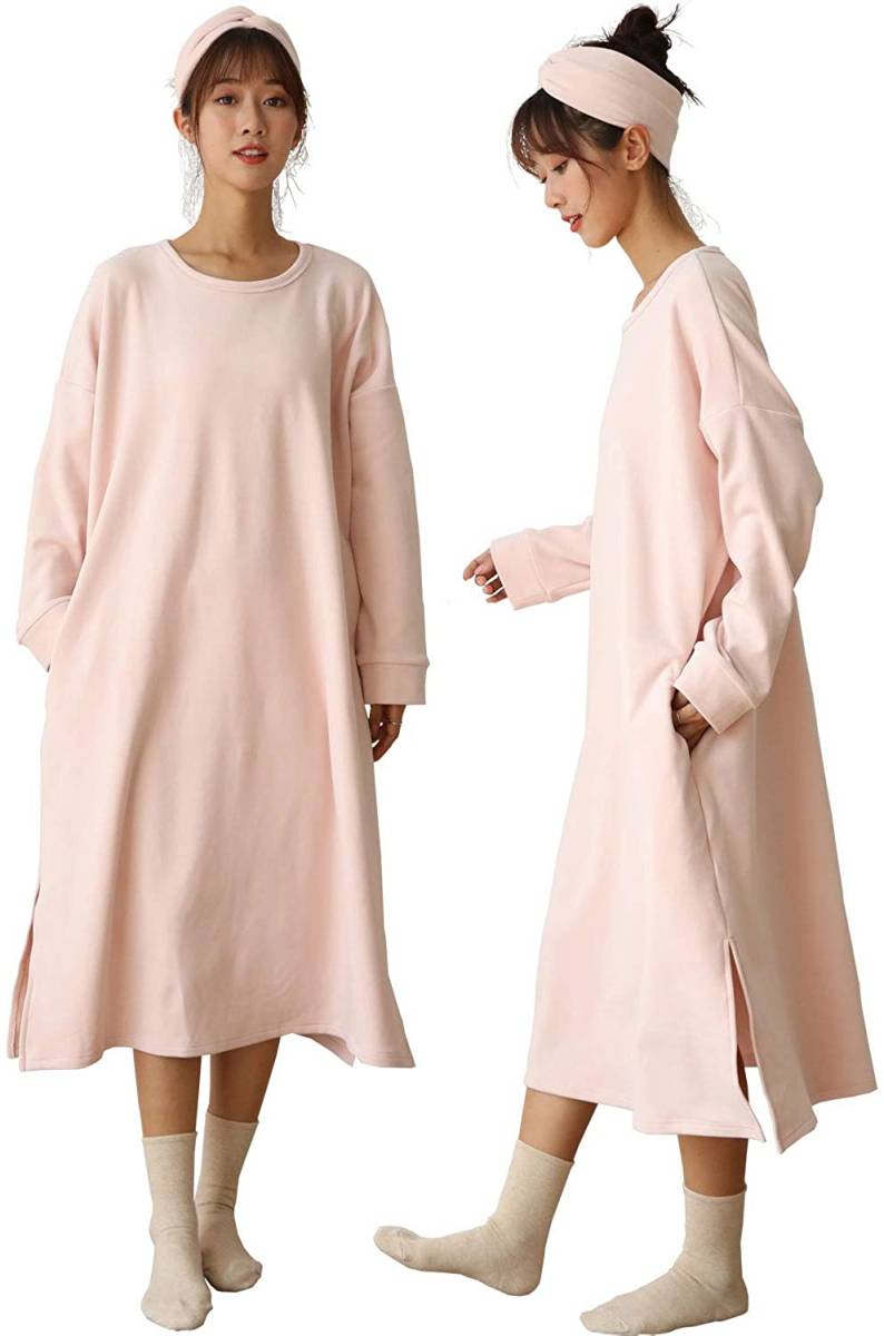 新品 かわいいワンピース レディース 冬 春 S M パジャマ 部屋着 寝間着 ナイトウェア パジャマ ヘアバンドセット