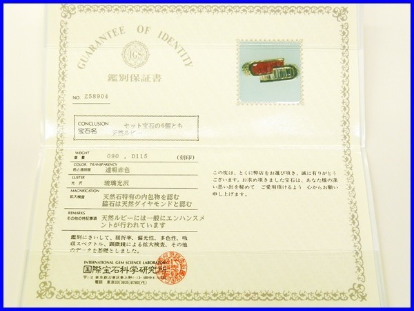 付属品:宝飾BOX 国際宝石科学研究所鑑別書
