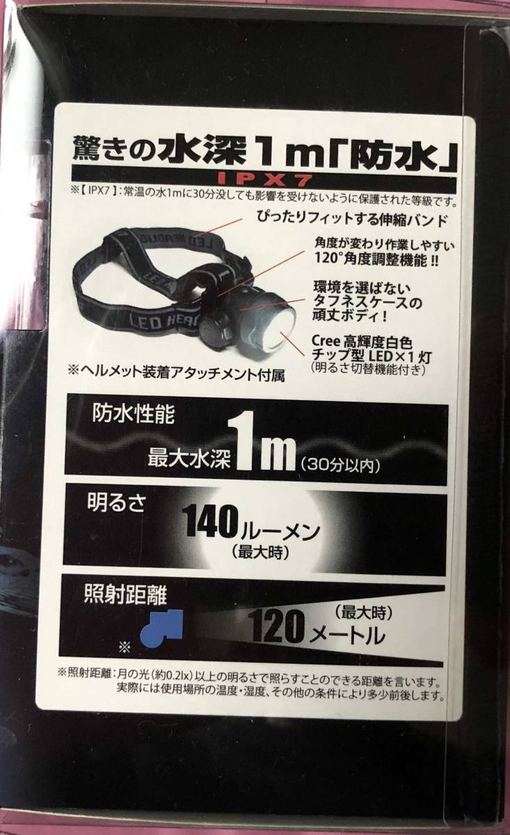 ・防水性能:IPX7 、本体材質: ABS 樹脂、付属品:ヘルメット用アタッチメント 4 個