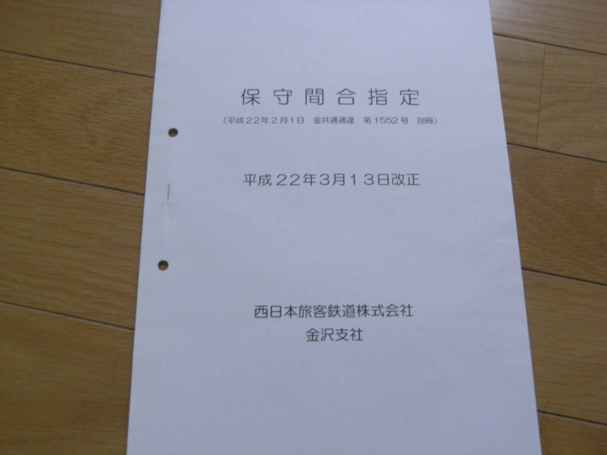 保守間合指定 平成22年3月13日改正 西日本旅客鉄道株式会社金沢支社 JR西日本