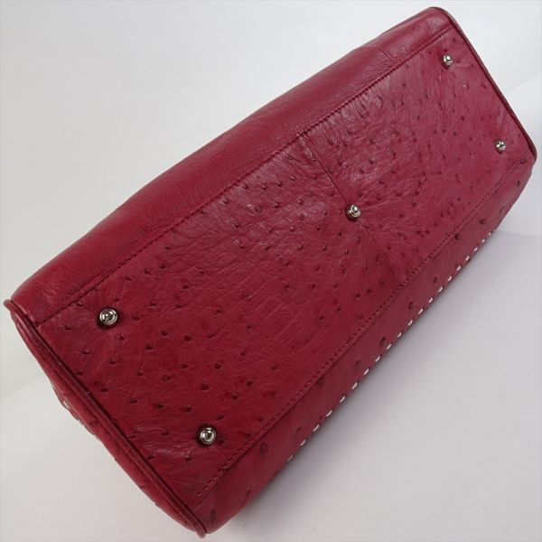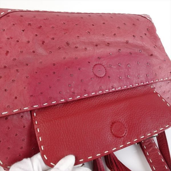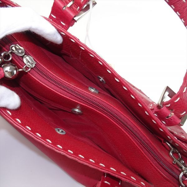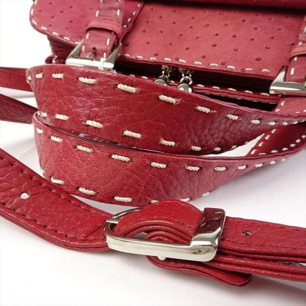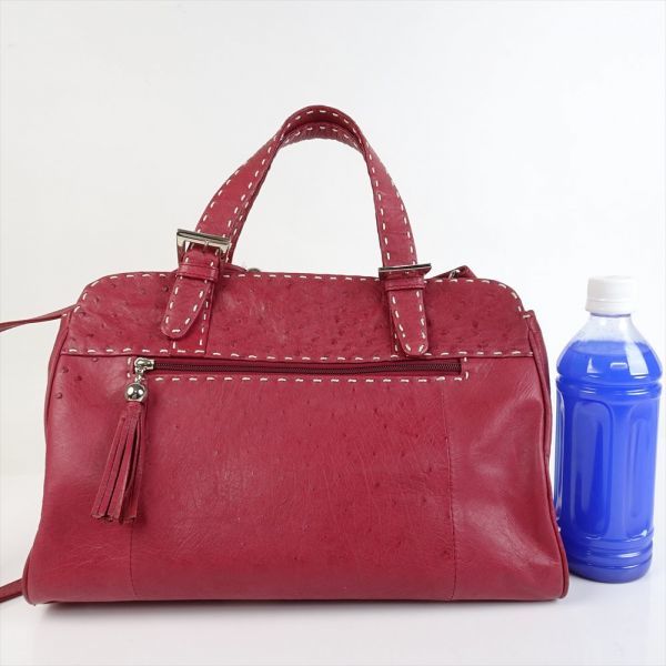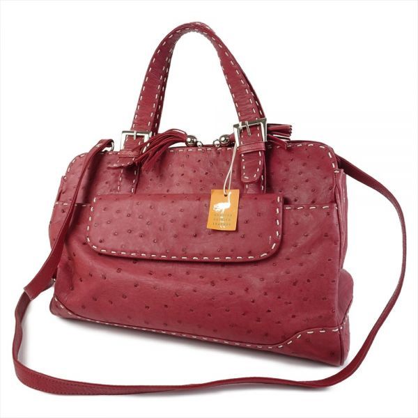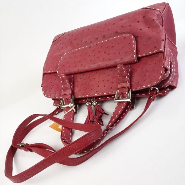 オーストリッチレザー ショルダー 2WAY バッグ 赤 レッド レザーバッグ 本革 ステッチ ポケット 収納 オースト 駝鳥 斜め掛け 4111