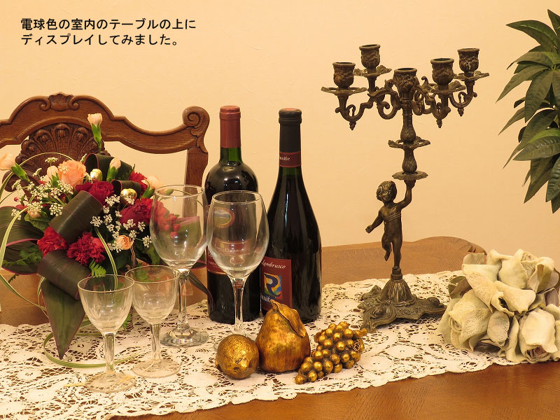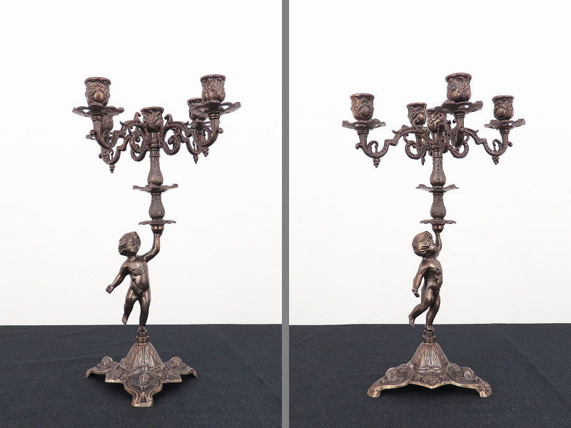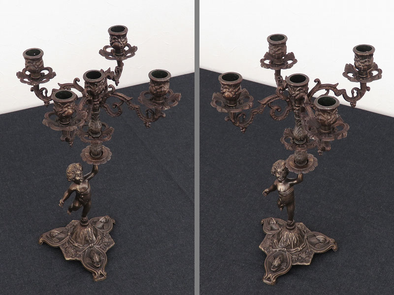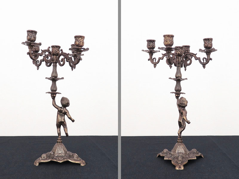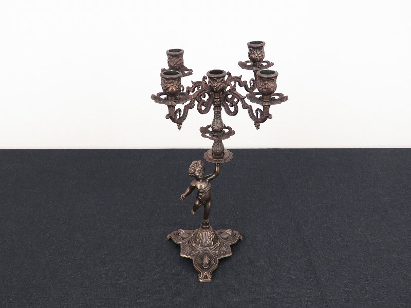 フランスで買い付けた天使の男の子が燭台を支えるデザインのフランス製キャンドルスタンドです。5灯の枝付き燭台(ジランドール)です。オブジェとして飾っていただいても素敵にお使いいただけます。