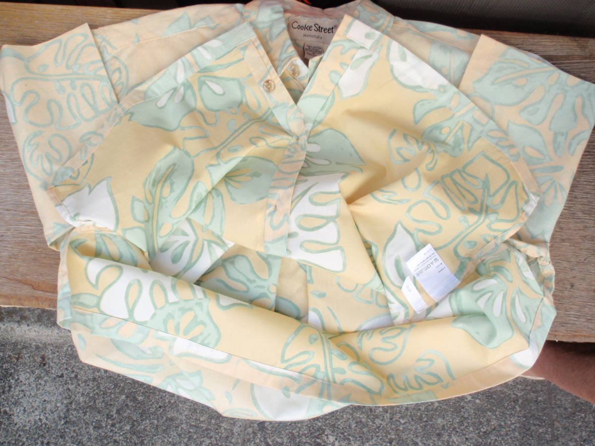 買ったけど使用しませんでしたので未使用品になります。勿論、汚れや傷は無く状態は良いです。クックストリートの黄色いアロハシャツになります(コットン100%)。サイズはS表記ですが、実寸では平置きで肩幅49センチ、身幅58センチ、着丈76センチ位です。正規品。
