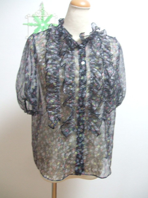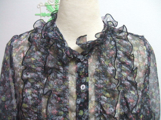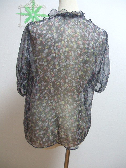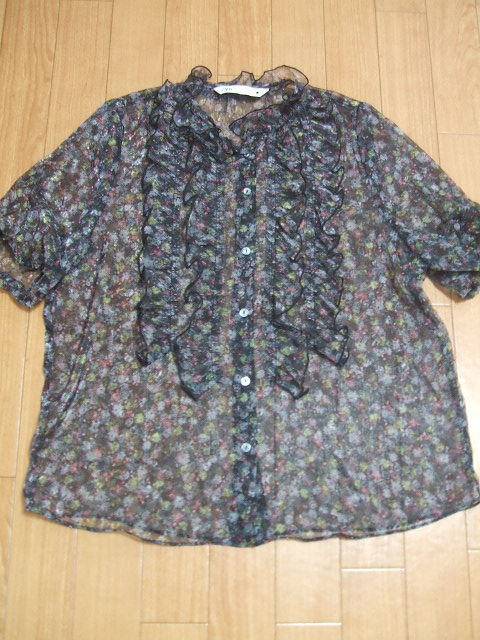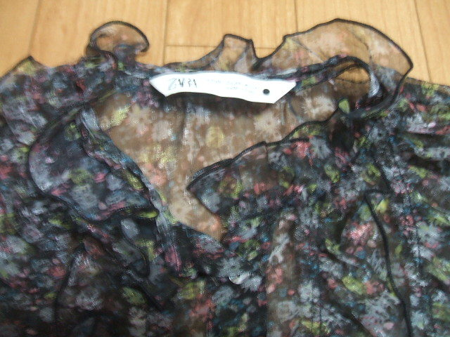 | 未使用◆ZARA★花柄フリル使い黒シフォンブラウス★XS | |