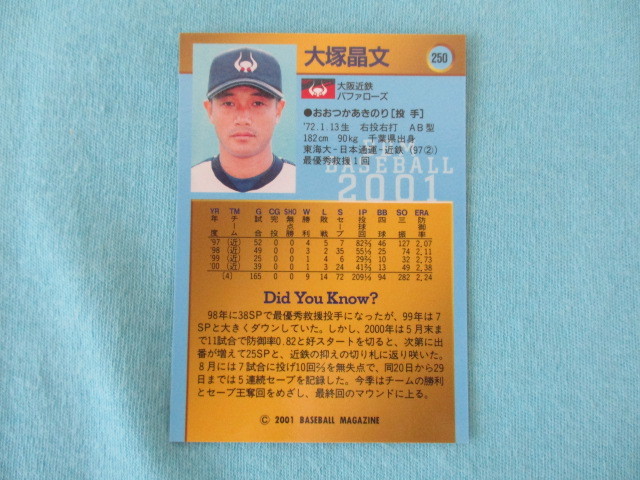 ★BBM 2001★〔250 大塚晶文 大阪近鉄バファローズ〕サイン(印刷) トレカ♪