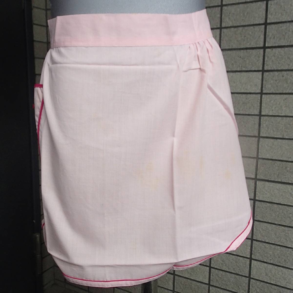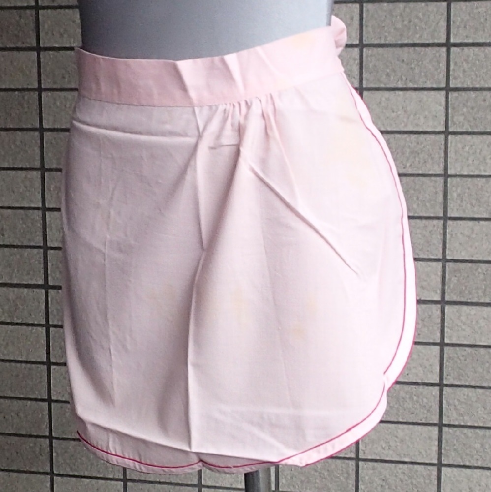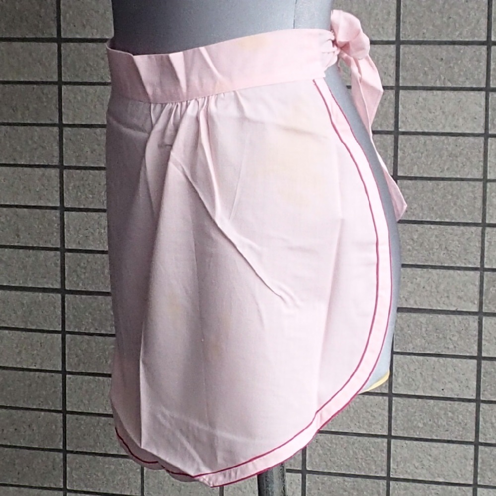 460/エプロン 前掛 カフェ サロン ソムリエ/腰紐 ピンク地/ポケット/36×68㎝/テープふちどり仕上げ/未使用 長期保管 Vintage Rare