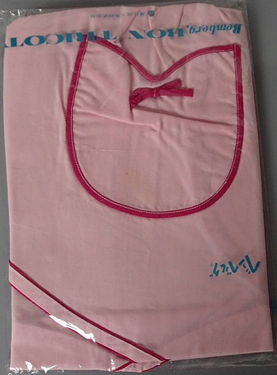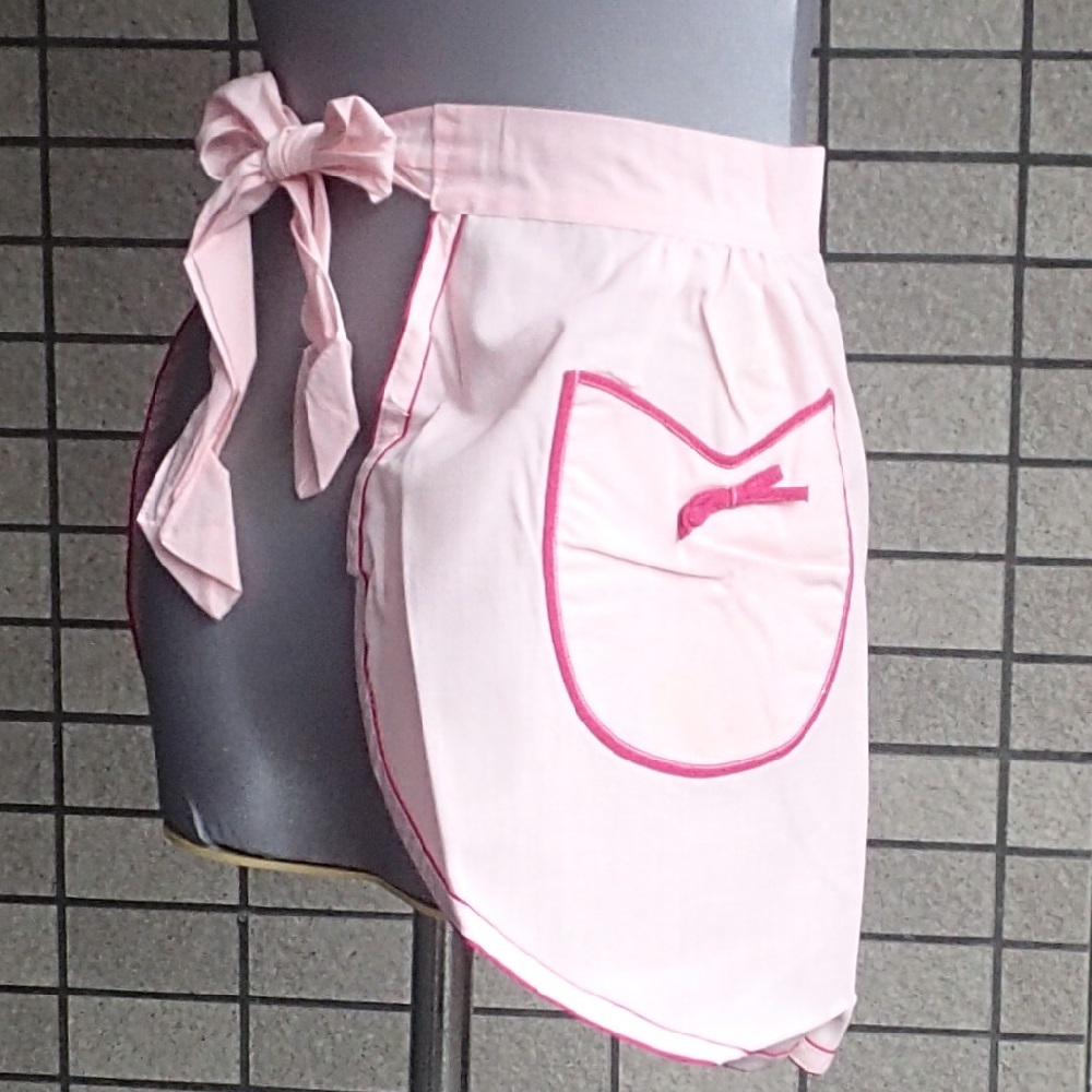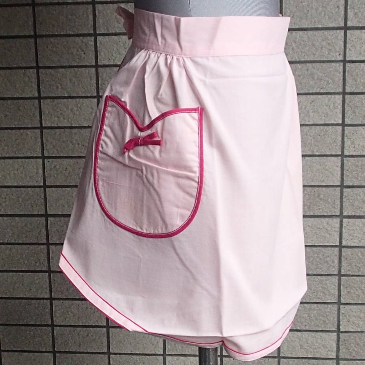 460/エプロン 前掛 カフェ サロン ソムリエ/腰紐 ピンク地/ポケット/36×68㎝/テープふちどり仕上げ/未使用 長期保管 Vintage Rare