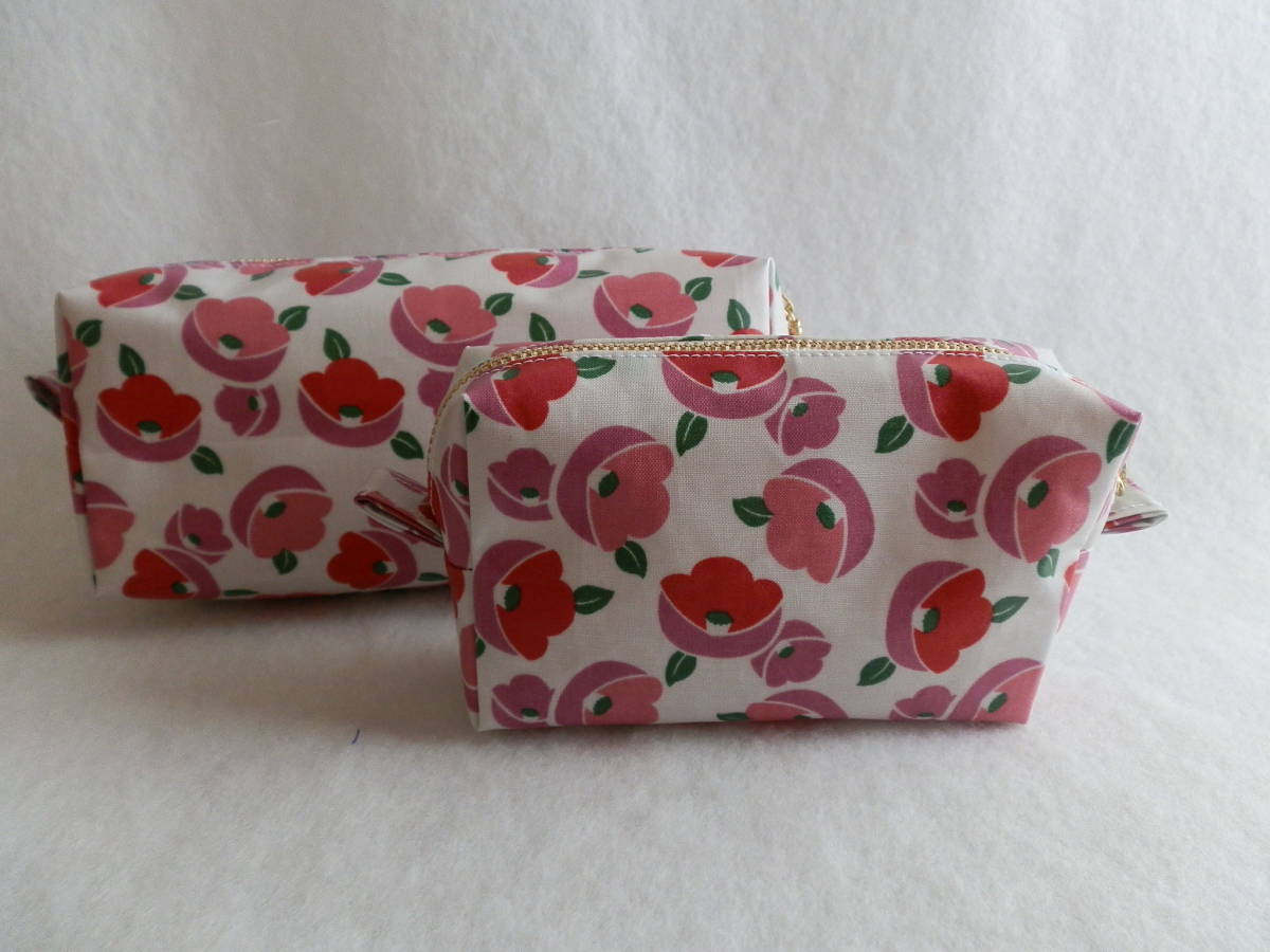 ツバキの模様のラミネート生地のBOXポーチ2点 サイズ大:縦:約8cm 横:約18cm 巾:約6cm 小:縦:約7cm 横:約13cm 巾:約4cm ラミネート生地なので軽く、外側は水や汚れにも強いです。◎趣味で家庭用ミシンを使用し作成しました。至らない部分も多々あるかと思います細かいことが気になる方はご入札をご遠慮願います。手作りにご理解のある方の落札をお願いします。何かわからない点がありましたら遠慮なくご質問してください。簡易包装で発送します。どうぞよろしくお願いいたします。