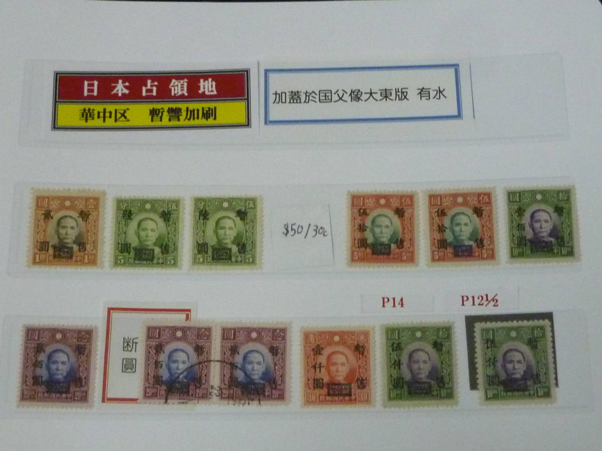21MI S №C 中国占領地切手 1943年 華中地区 暫讐加刷 国父像大東版(有水) 計10種+ペア(使用済) 未使用NH
