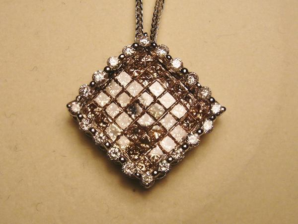 ブラウンダイヤの大粒ペンダントは豪華にゴールデンカラーを放って、貴女の首元を輝かせます・・・。