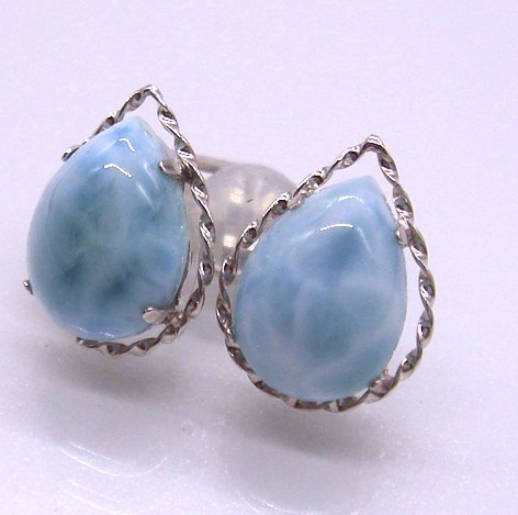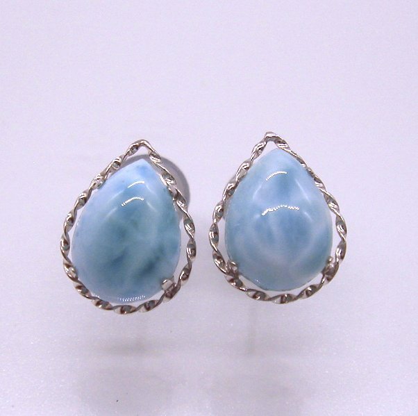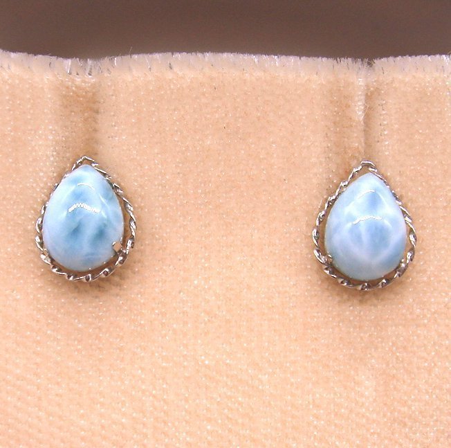 約6×8mmサイズ ペアシェイプ カボッションカット ラリマー:1.00ct×2ヶ=合計 2.00ct