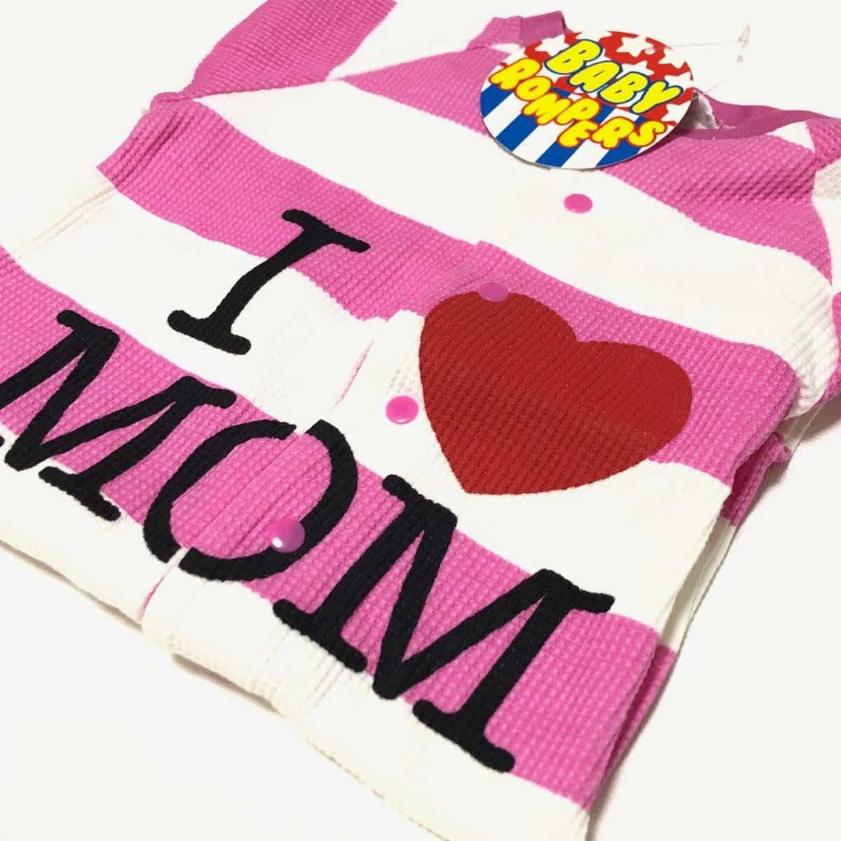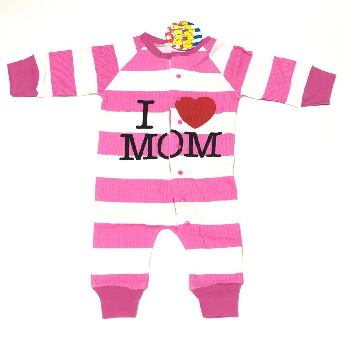 とっても可愛いI LOVE MOM柄の長袖ロンパースです♪
