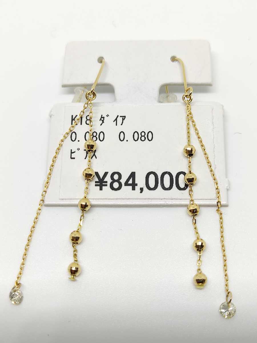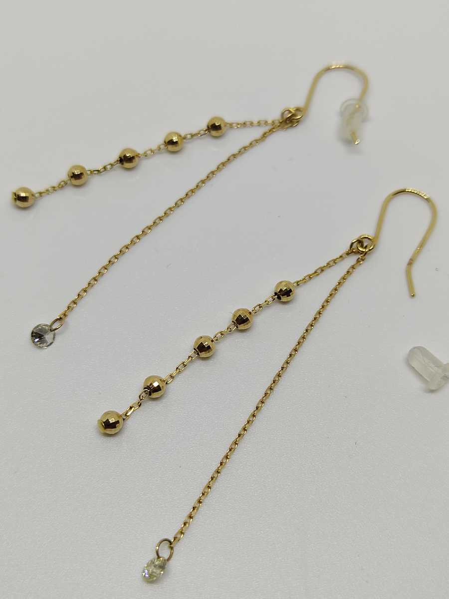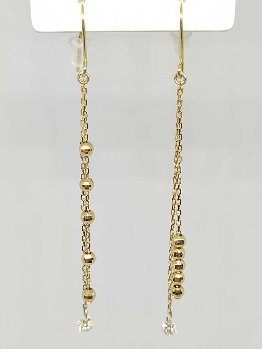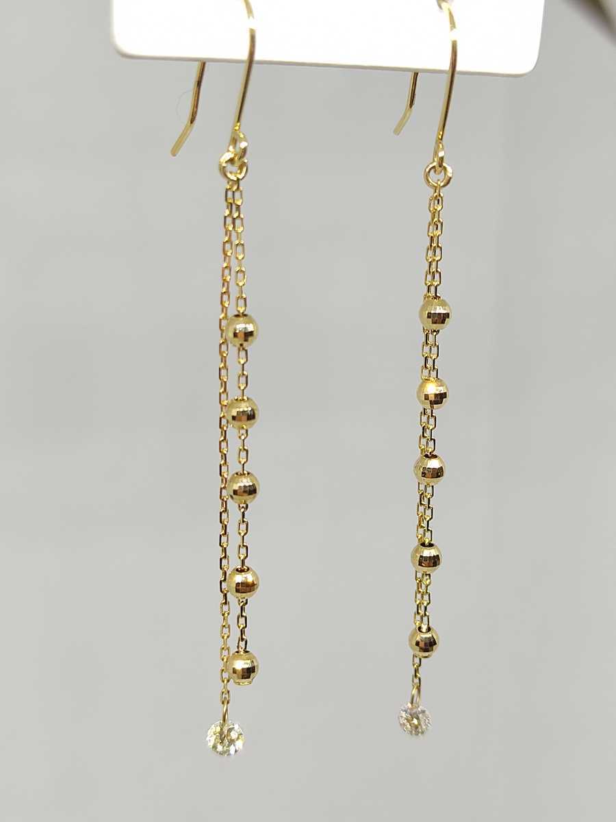 K18 レーザーホールダイヤ&ミラーボール ドロップピアスです。