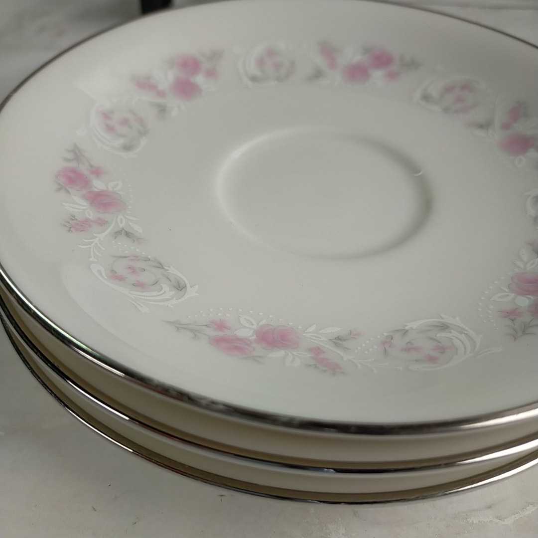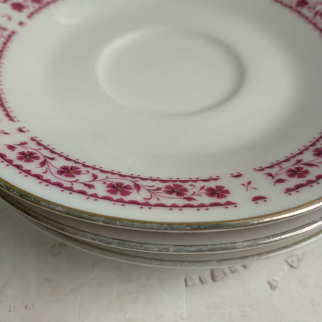 アイボリーチャイナ・ピンクの花柄・3枚 / 直径15  高さ2.3 底径8.5㎝