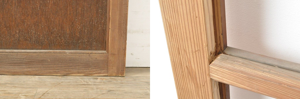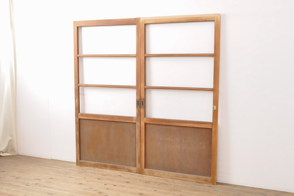 R-056363 アンティーク建具 レトロな部屋づくりにぴったり!古い木製のガラス戸2枚セット(引き戸)(R-056363)