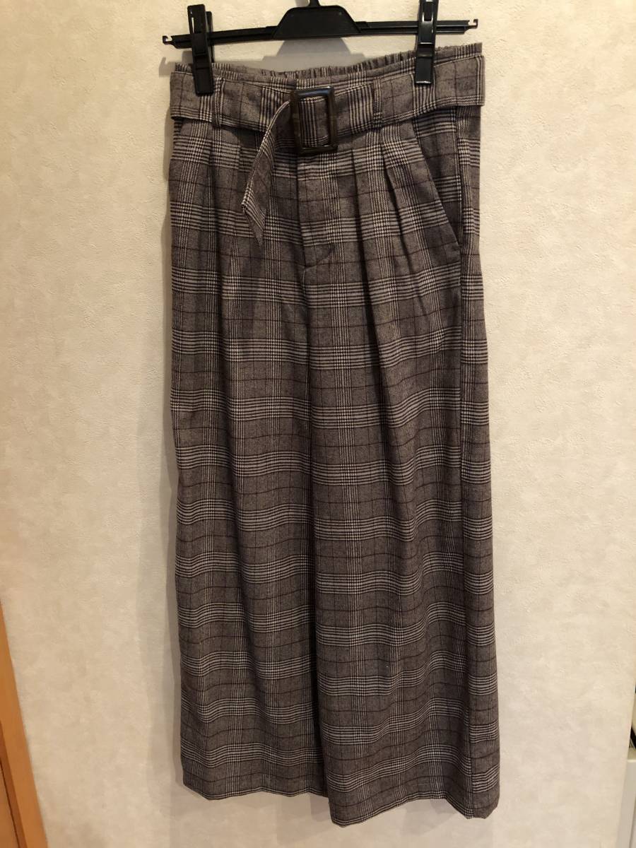 美品・しまむら・ワイドパンツ・グレンチェック柄・リボンベルト付き・サイズM・茶系・300円