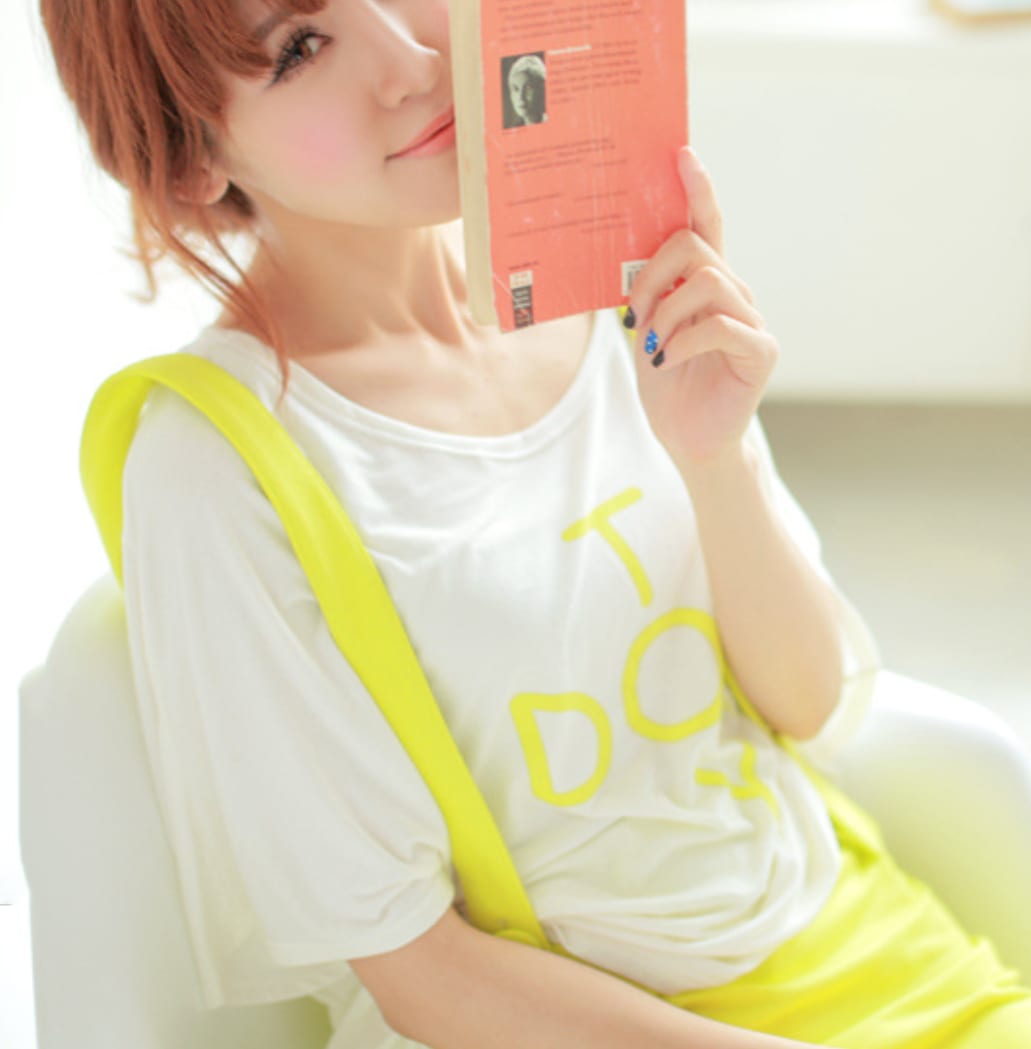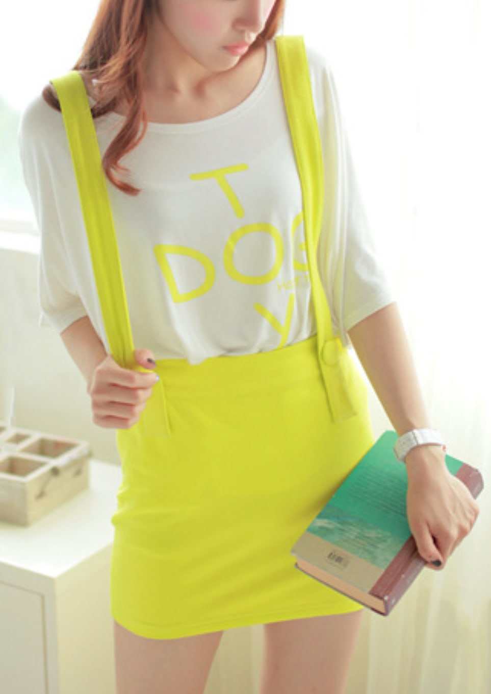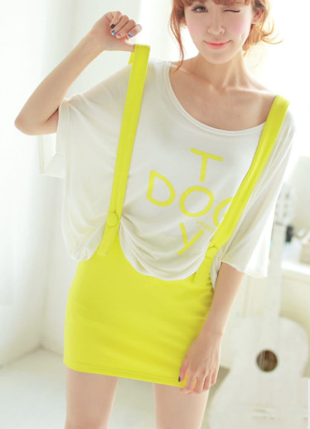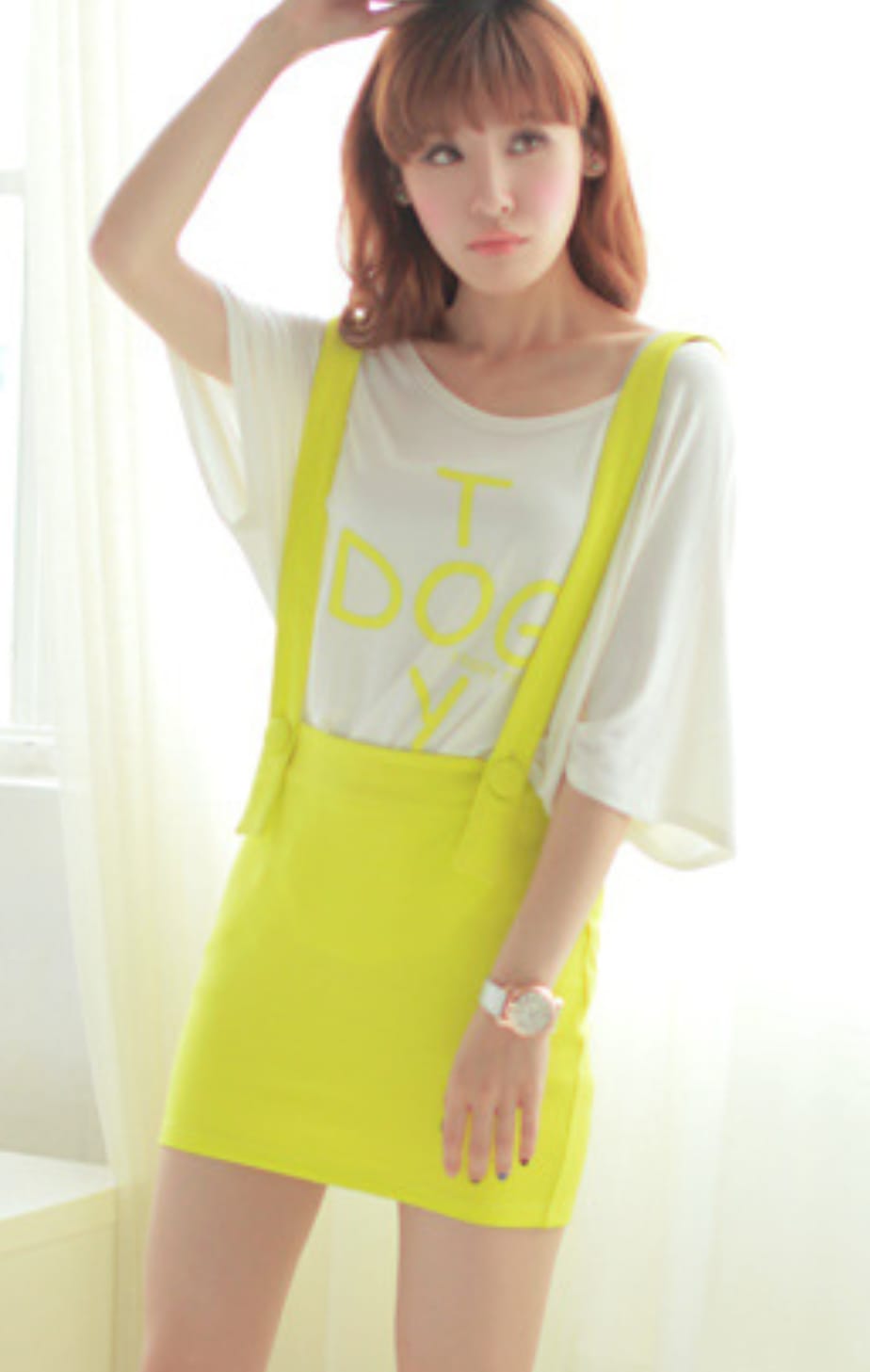 r028☆ゆったりシャツとサスペンダースカートのツーピース[黄]
