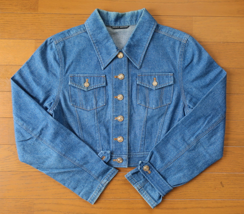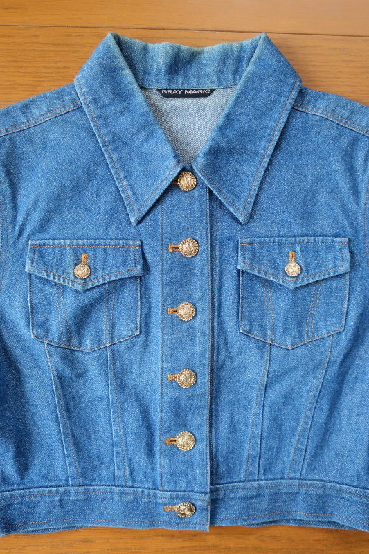 ヴィンテージ ショート丈 ゴールドのボタンが印象的な デニムジャケット