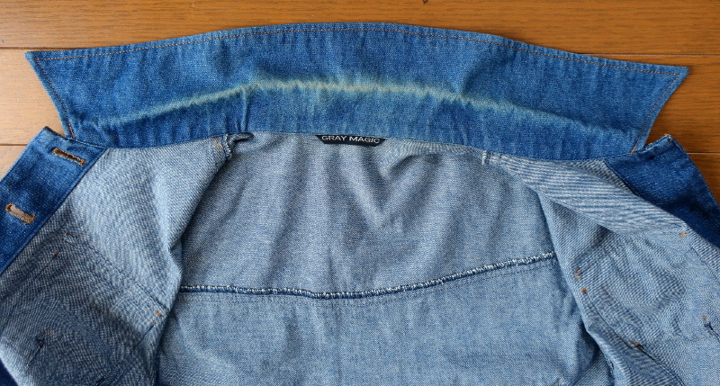 中古のデニム製品のため、衿、袖口に色落ちがあります。