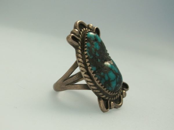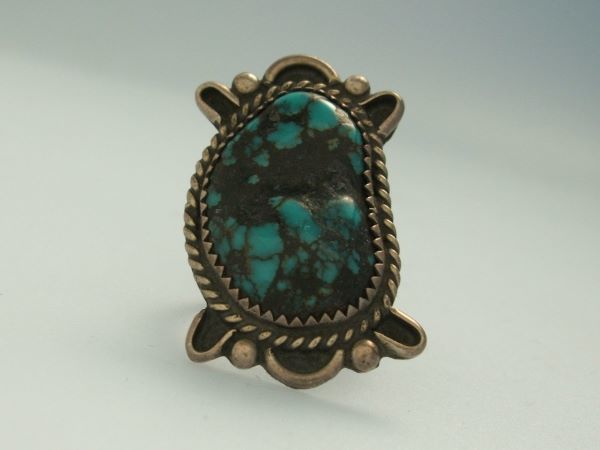 商品説明 | ターコイズが付いたオールドリングです。 中古入手30年くらい前の作品です。 |
