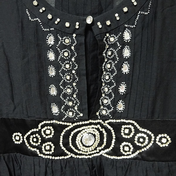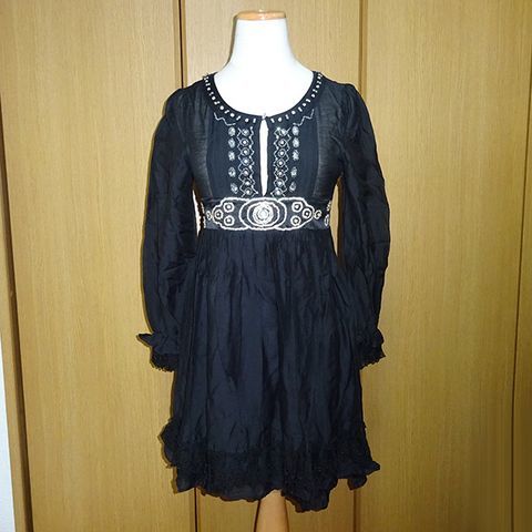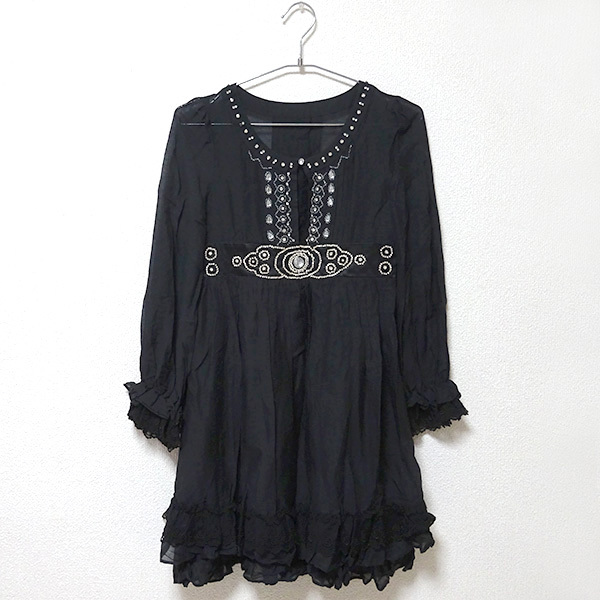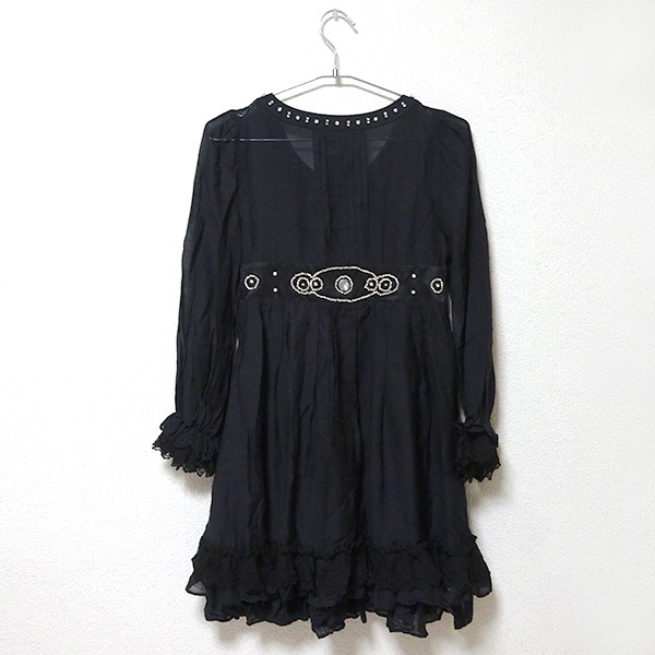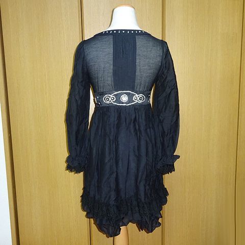 Me Couture ミークチュール ビジュー フリルワンピース 長袖ワンピース ミニワンピース ブラック 黒 M 結婚式 パーティー
