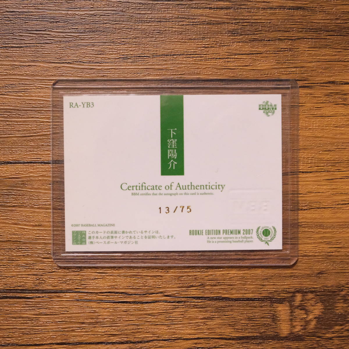 【送料無料】2007 BBM ROOKIE EDITION/ベースボールマガジン/横浜ベイスターズ/下窪陽介/#9/直筆サインカード/シリアルナンバー 13/75