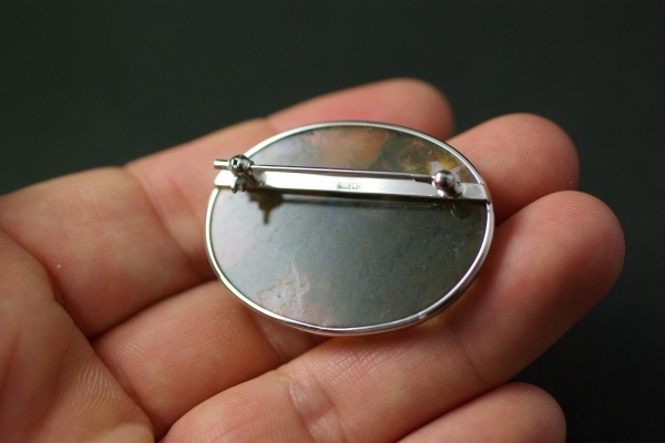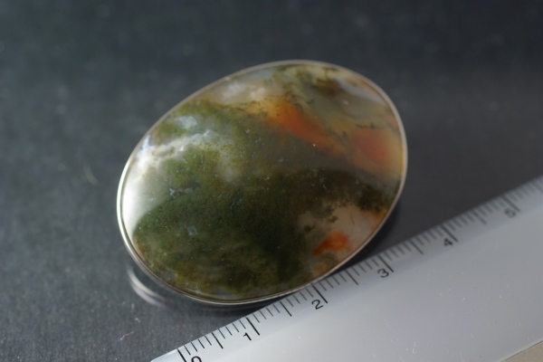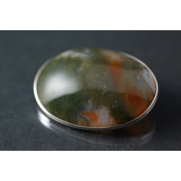 30×40mmのカボション型のモスアゲートにシルバーで縁取りをしました。