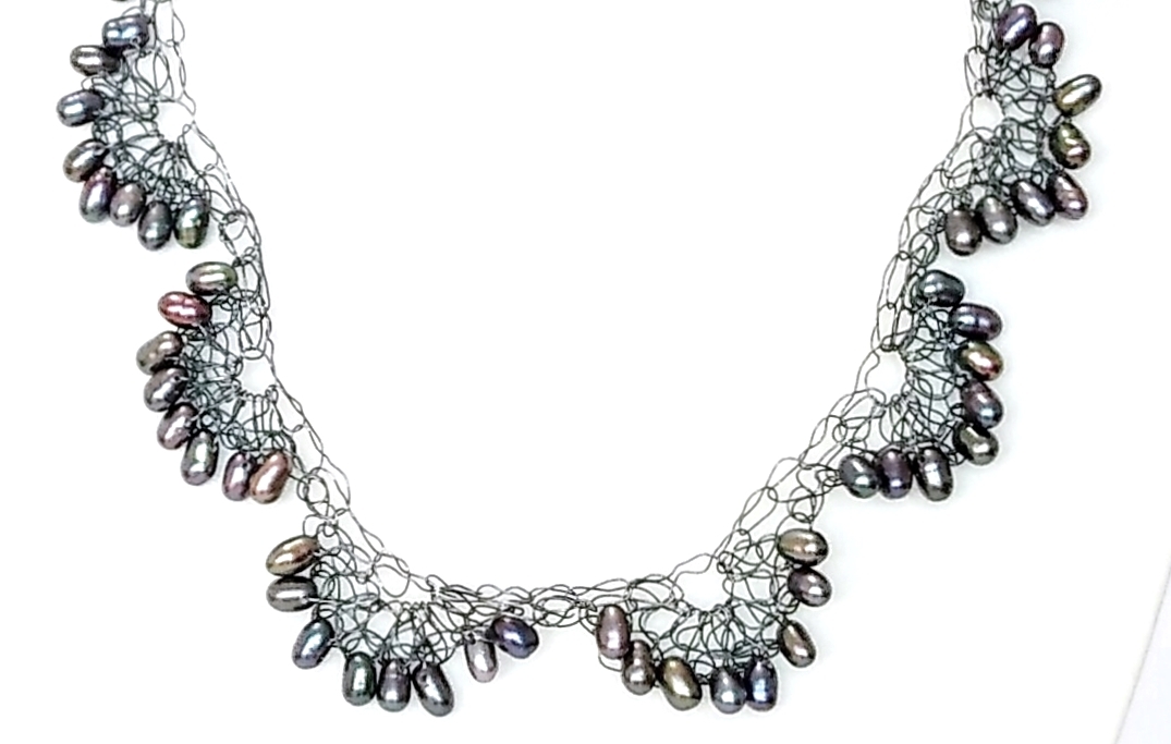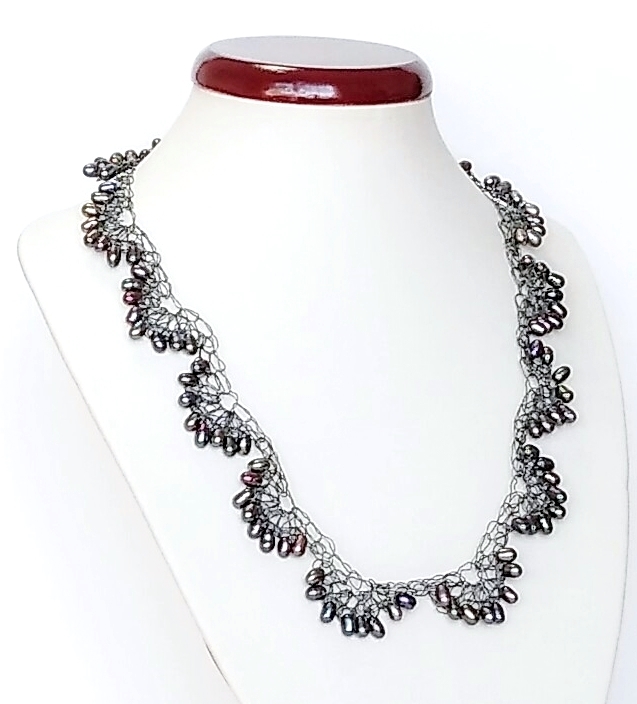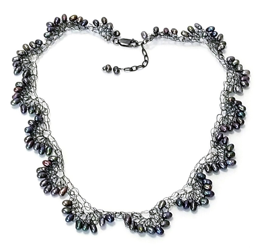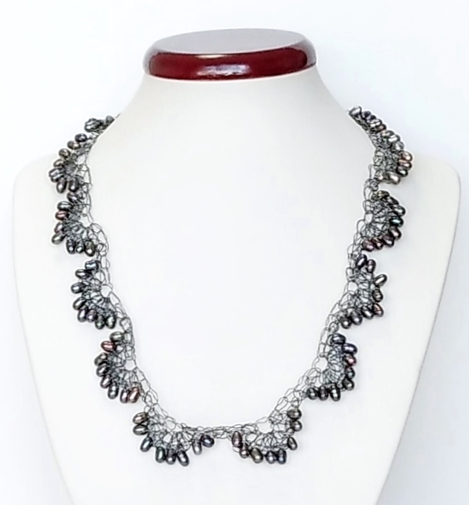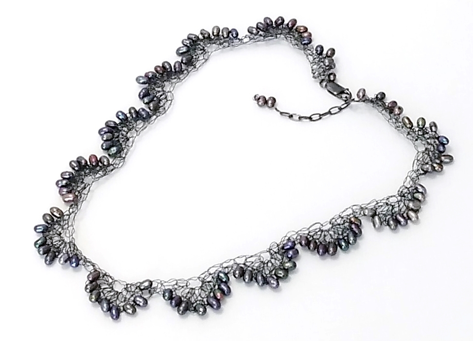 ハンドメイド(手作り)の1点物です。 純銀の極細ワイヤーにブラック淡水パール(淡水真珠)をスカラップ状に編み込んだ 繊細でグレード感のある上品な大人のアクセサリー。 一つ一つ丁寧に純銀を編込み、さらにいぶしてシックに仕上げました。 可愛らしい型ですが、落ちついた淡水パール(淡水真珠)といぶした銀線が大人の雰囲気を 醸し出しています。 身につけていることを忘れる位、ソフトで軽くつけ心地抜群。 普段使いからおしゃれ着にと広範囲にお使いになれます。 市場ではあまり見かけることがない希少価値のあるアクセサリーです。 問屋を通さず、メーカー直結ならではのプライスでご提供いたします。 絶好のチャンスをお見逃しなく!! 是非おすすめします。 素 材:ブラック淡水パール(淡水真珠) ワイヤー部分・超ソフトタイプの純銀いぶし サイズ:本体の長さ・40cm アジャスター・4cm ヒキ輪・カニカンはシルバー925いぶし stn-093 市場価格の5割引でご奉仕いたします。 無料でラッピング致します。ご希望の方はその旨お申し出下さい。 | |||