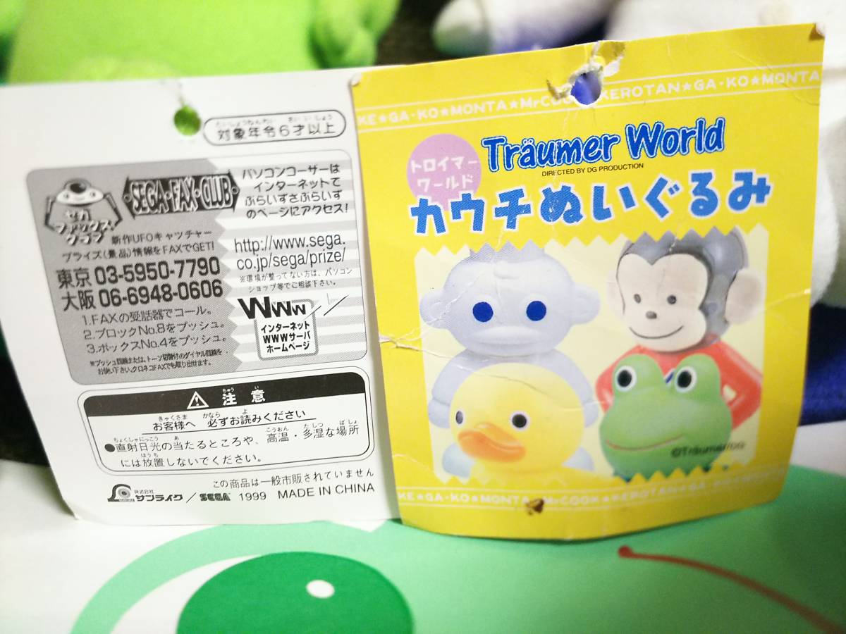 ☆1999年製(20年以上前)のトロイマーワールド、アミューズメント【非売品】ぬいぐるみ、フルコンプ全4種コンプリートのセットです!!コーワ紙袋つき!興和ケロちゃんコロちゃんソフビ希少!ケロヨン蛙ケロタンfrogカエルvon Traumer worldカウチぬいぐるみトロイマー コックさん ガーコ アヒル ケロタンMR.cook高さ約18cmソファー