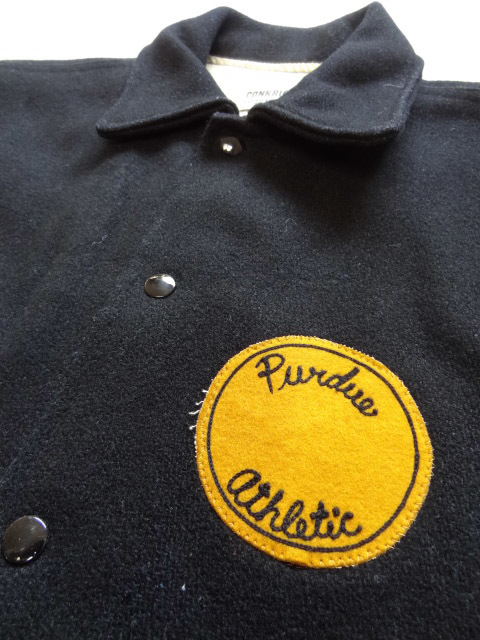 ビンテージ 希少 40S 50S オール 黒 ブラック ロング スタジャン サイズ 36 ネーム パッチ ワッペン USA カレッジ スポーツ レア コート 色